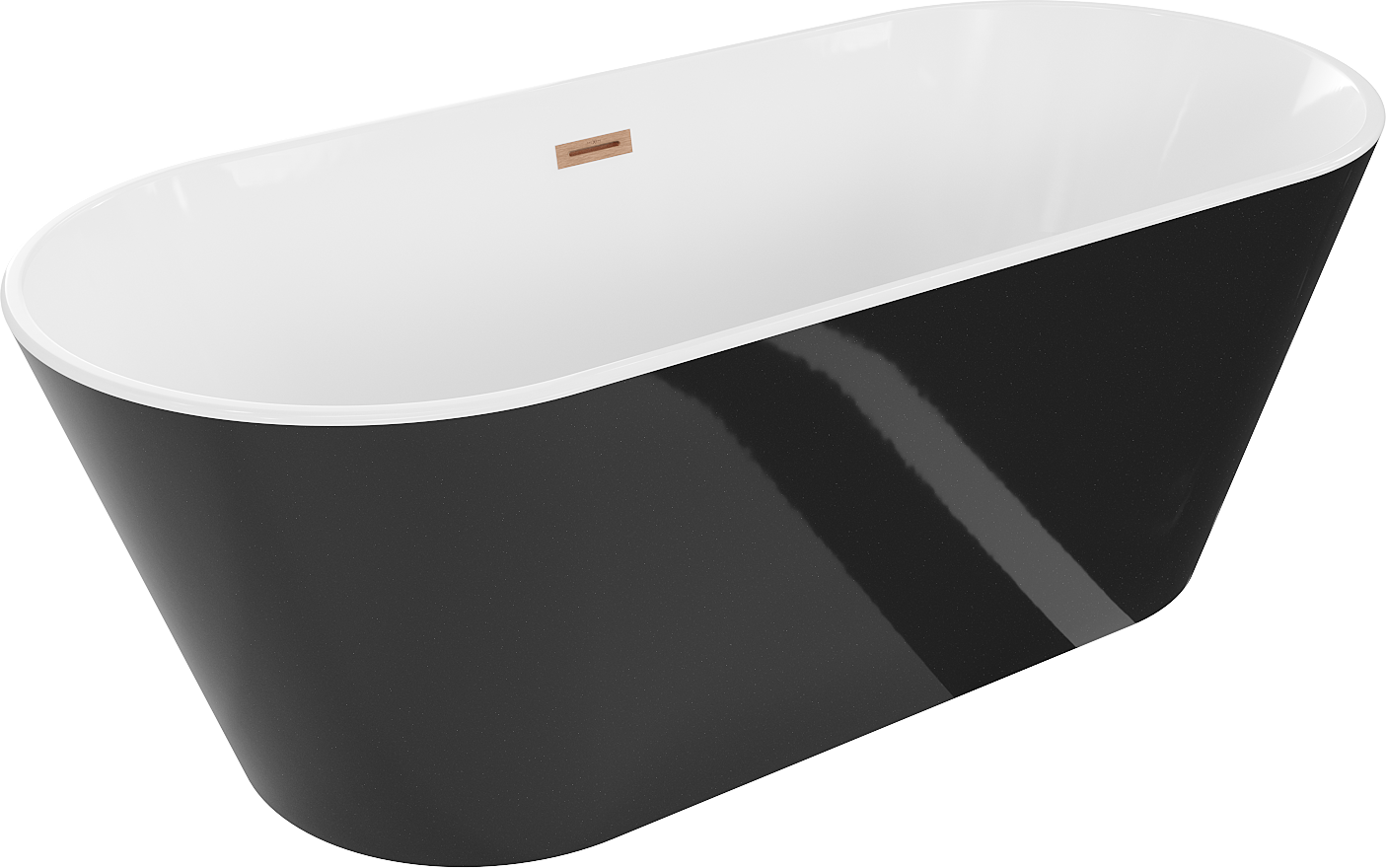Mexen Flavia baignoire autoportante 170 x 75 cm, blanche/noire, trop-plein cuivre brossé - 54031708075-65
