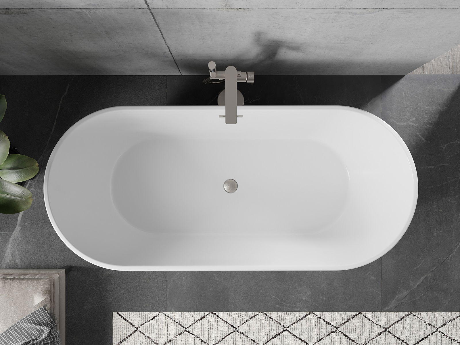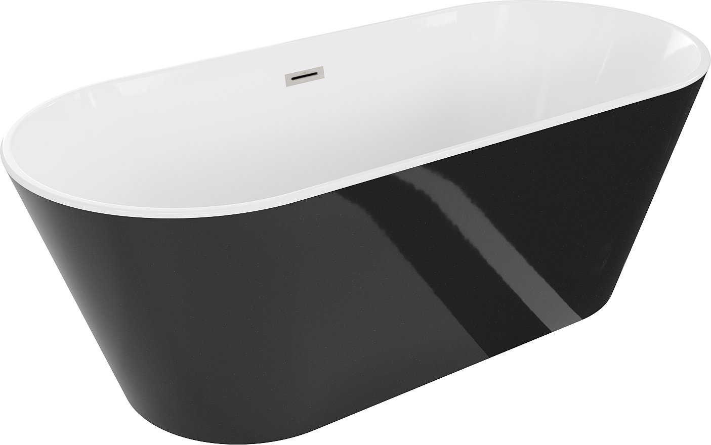 Mexen Flavia baignoire autoportante 170 x 75 cm, blanche/noire, trop-plein nickel brossé - 54031708075-97