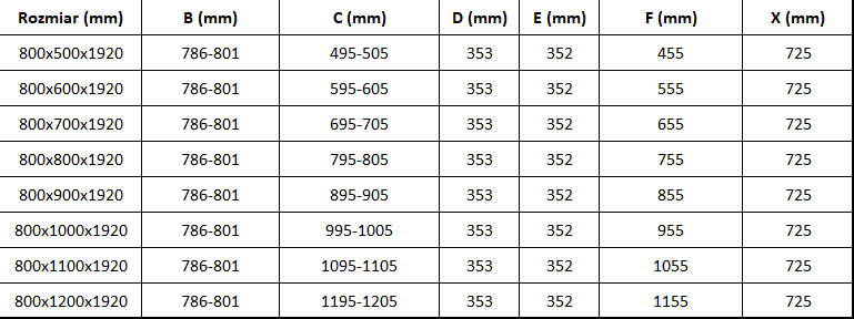 Taille : 80x80 cm (porte 80 cm, paroi 80 cm)