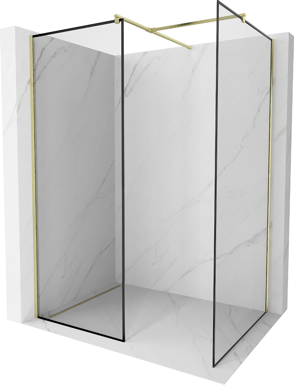 Mexen Kioto cloison de douche Walk-in 90 x 90 cm, cadre noir, doré brossé - 800-090-202-55-70-090