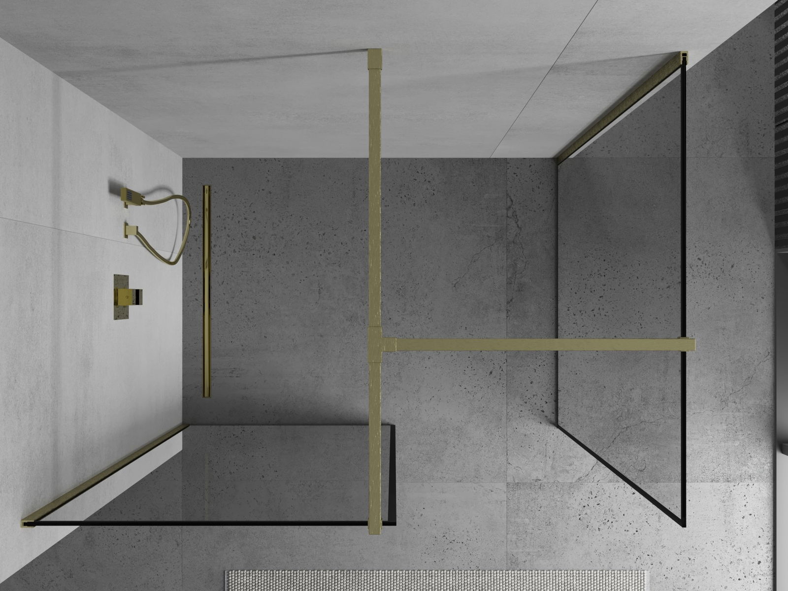 Mexen Kioto paroi de douche Walk-in 110 x 90 cm, cadre noir, or brossé - 800-110-202-55-70-090