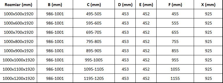 Taille : 100x90 cm (porte 100 cm, paroi 90 cm)