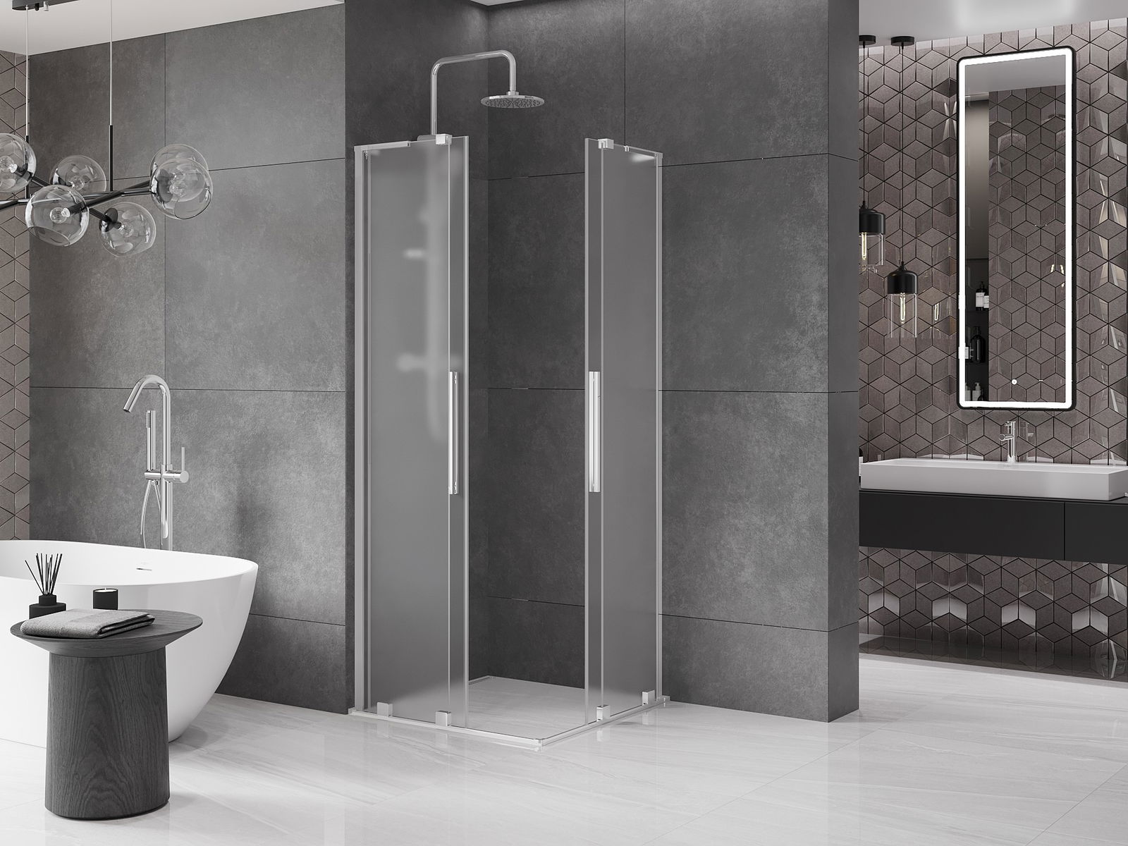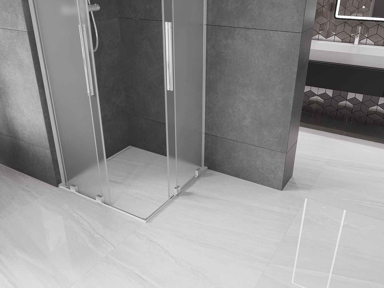 Mexen Velar L Duo cabine de douche coulissante 100 x 100 cm, givrée, chromée - 871-100-100-02-33-01
