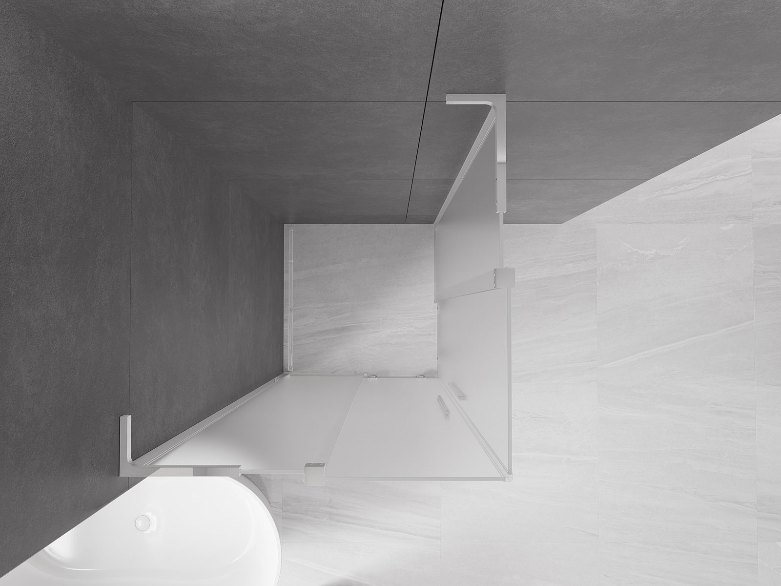 Poignée pratique et confortable en acier inoxydable. La forme moderne associée à une finition assortie à la couleur des profilés confère à l'ensemble un aspect moderne et élégant, soulignant l'esthétique de chaque salle de bain.