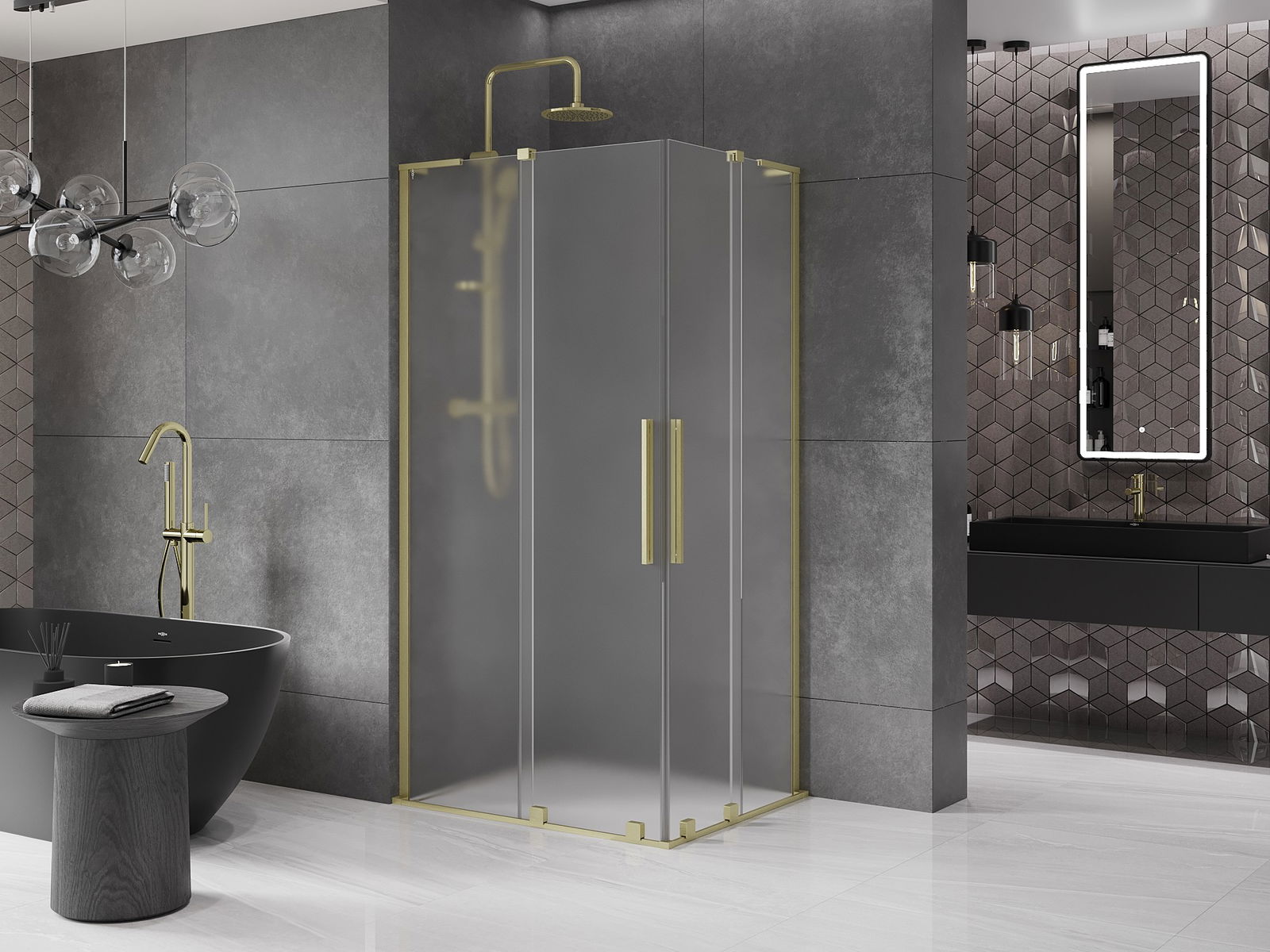 Mexen Velar L Duo cabine de douche coulissante 90 x 80 cm, givrée, or brossé - 871-090-080-02-33-55