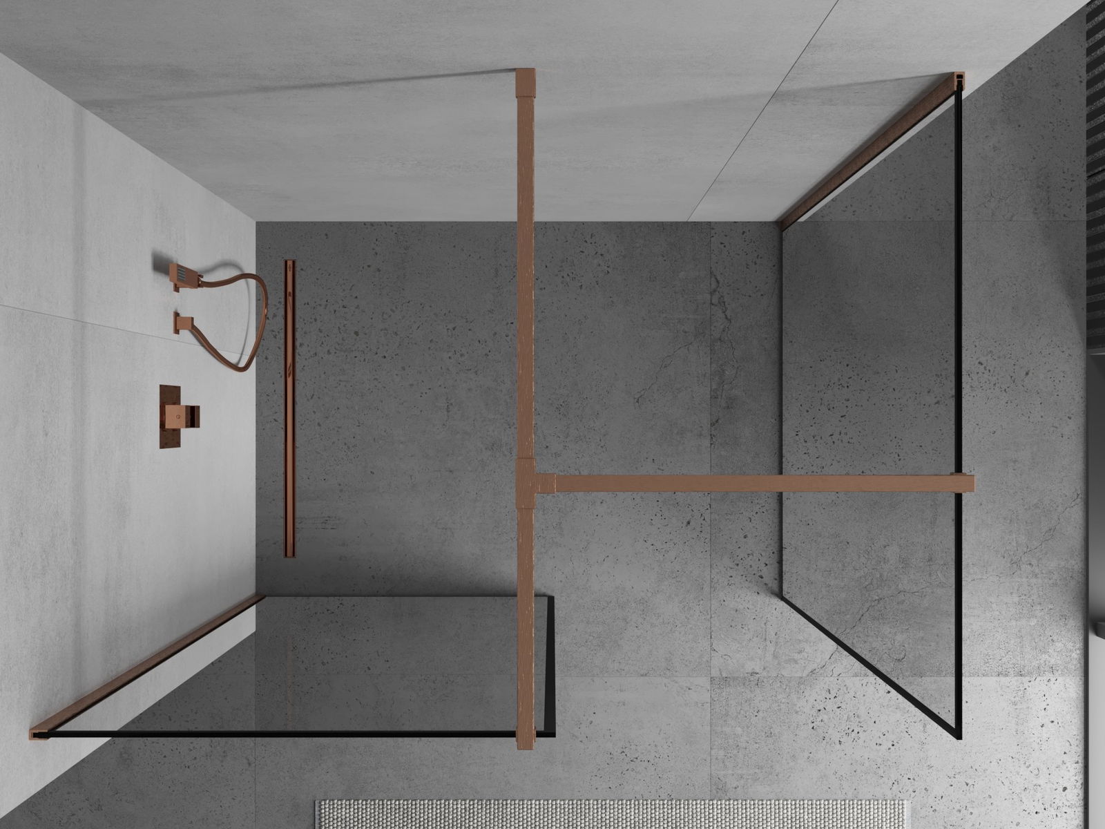 Mexen Kioto paroi de douche Walk-in 120 x 70 cm, cadre noir, cuivre brossé - 800-120-202-65-70-070