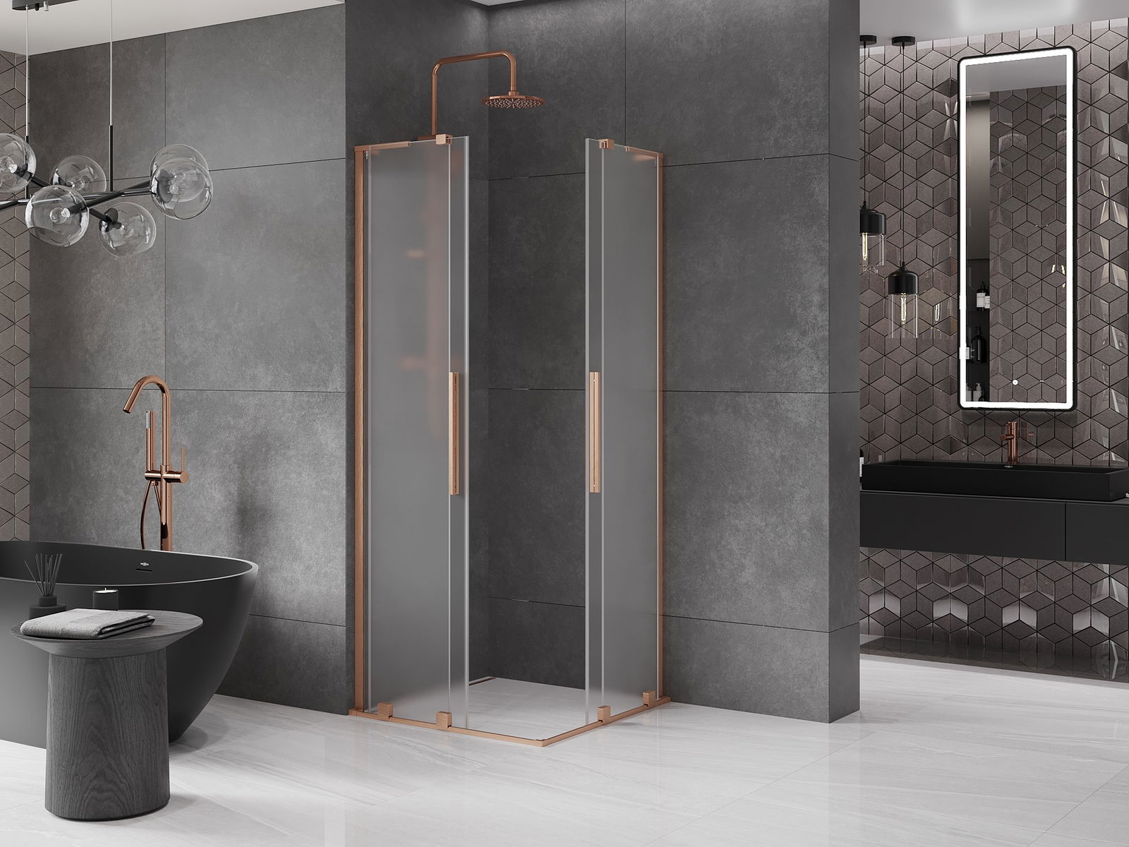 Mexen Velar L Duo cabine de douche coulissante 90 x 90 cm, givre, cuivre brossé - 871-090-090-02-33-65