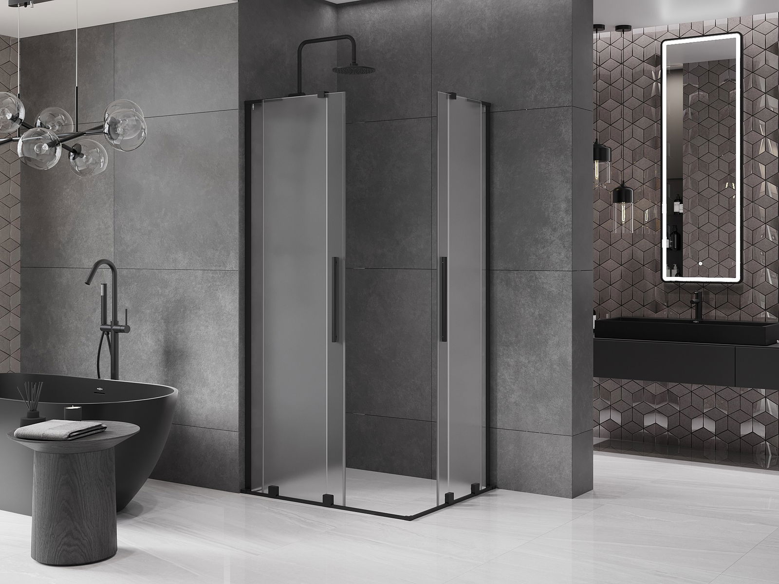 Mexen Velar L Duo cabine de douche coulissante 100 x 90 cm, givrée, noire - 871-100-090-02-33-70