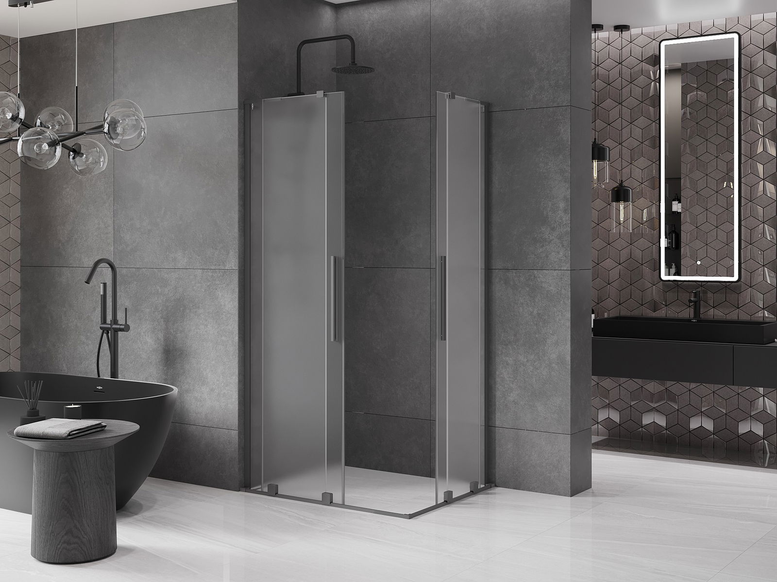 Mexen Velar L Duo cabine de douche coulissante 90 x 80 cm, verre dépoli, gun metal - 871-090-080-02-33-95