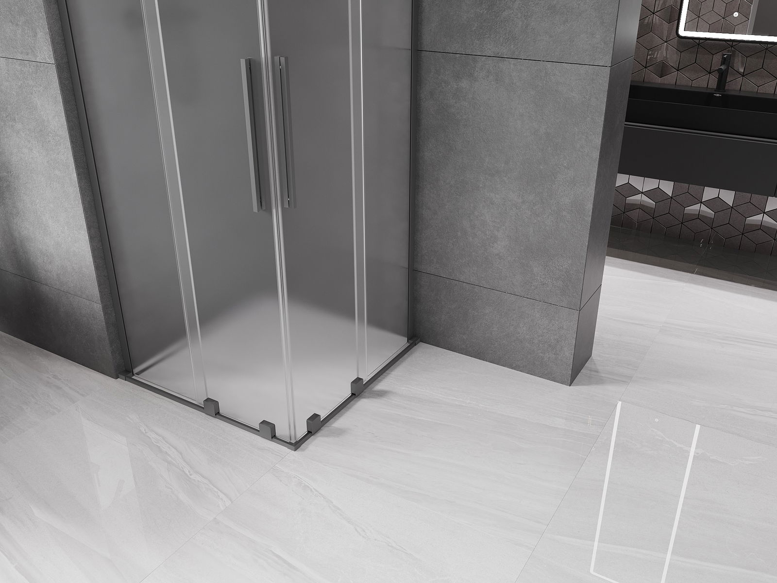 Mexen Velar L Duo cabine de douche coulissante 100 x 100 cm, givre, métal canon - 871-100-100-02-33-95