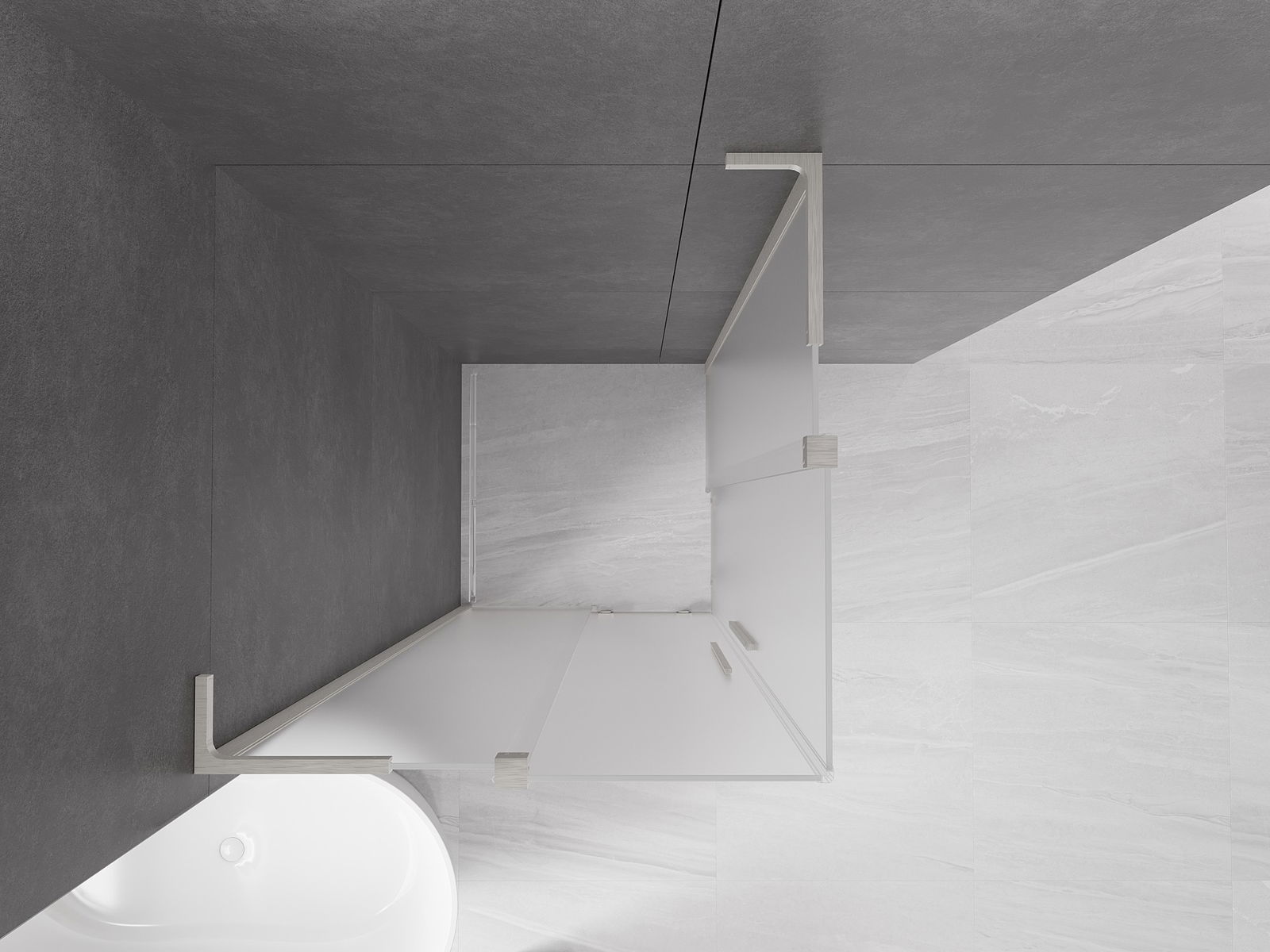 Poignée pratique et confortable en acier inoxydable. La forme moderne associée à une finition assortie à la couleur des profilés confère à l'ensemble un aspect moderne et élégant, soulignant l'esthétique de chaque salle de bain.