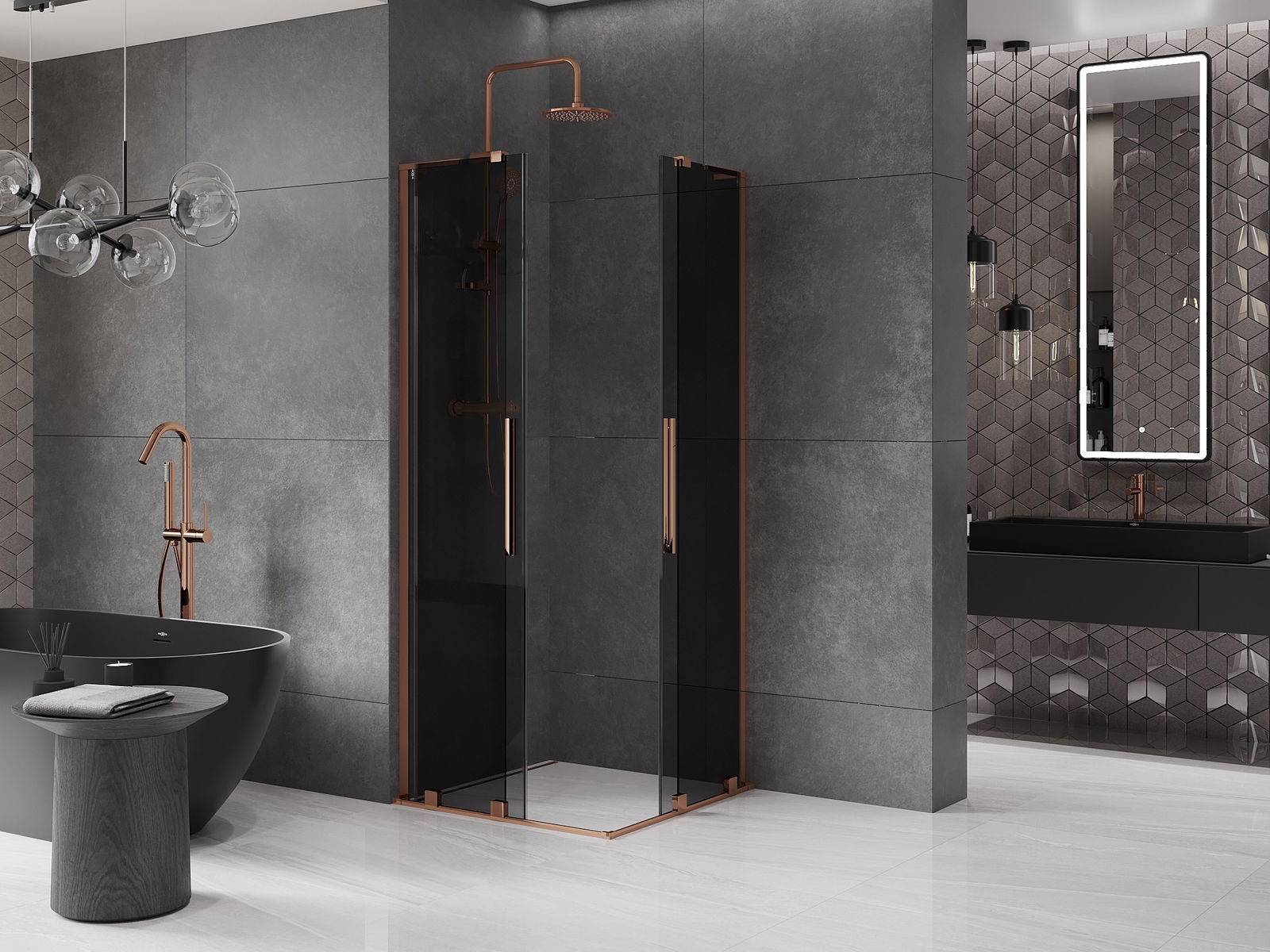 Mexen Velar L Duo cabine de douche coulissante 100 x 100 cm, graphite, or rose - 871-100-100-02-43-60