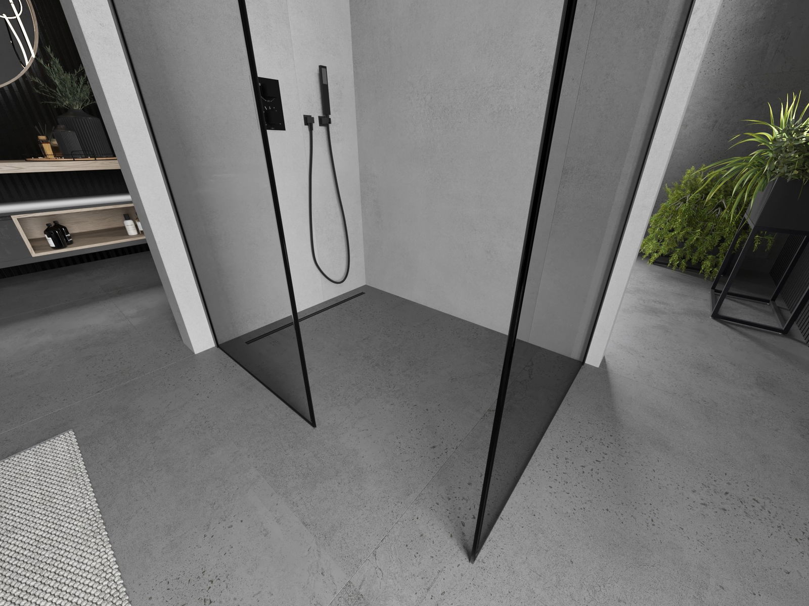 Mexen Kioto paroi de douche Walk-in 150 x 90 cm, cadre noir, métal gun - 800-150-202-95-70-090