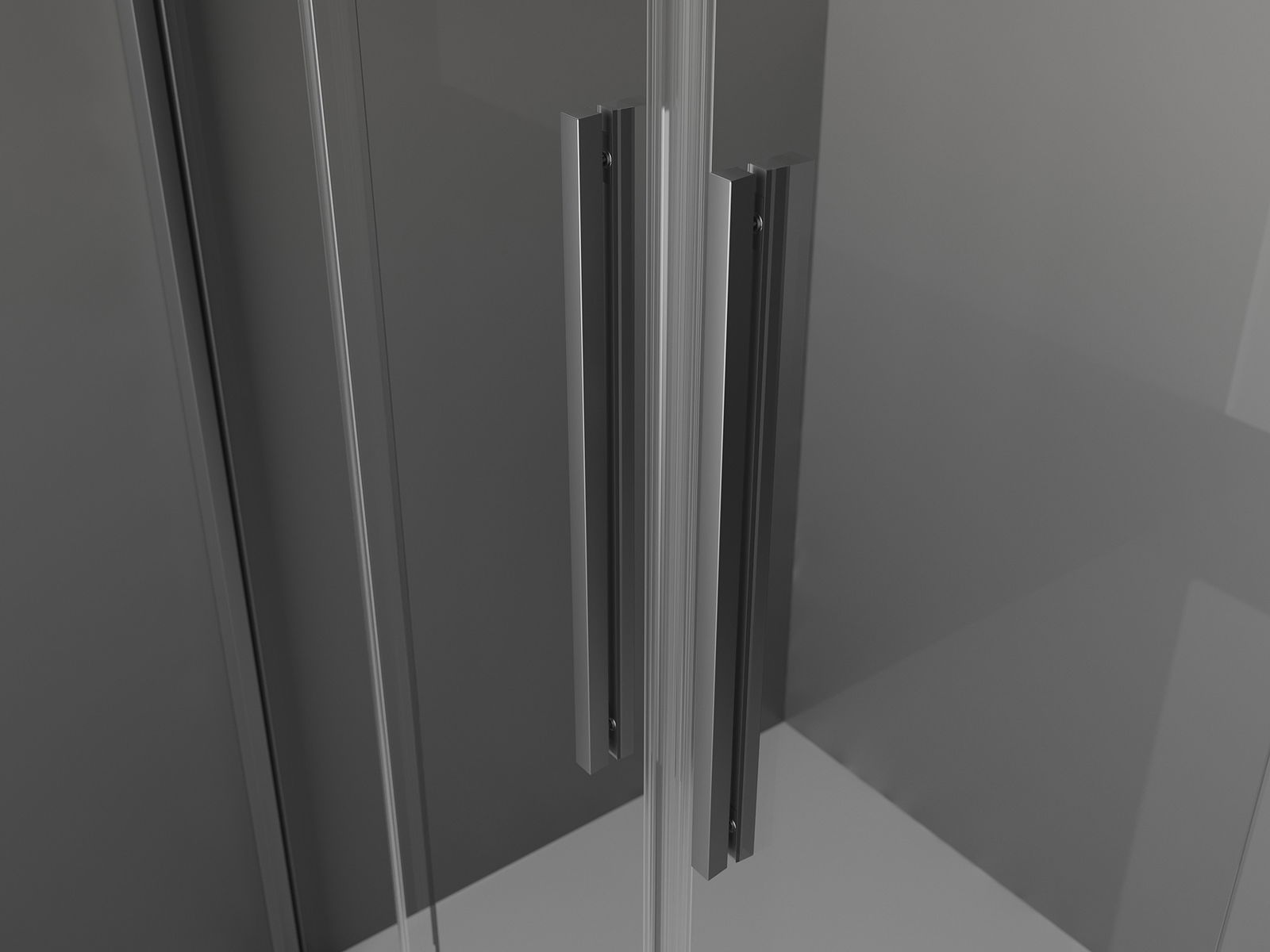 Poignée pratique et confortable en acier inoxydable. La forme moderne associée à une finition assortie à la couleur des profilés confère à l'ensemble un aspect moderne et élégant, soulignant l'esthétique de chaque salle de bain.