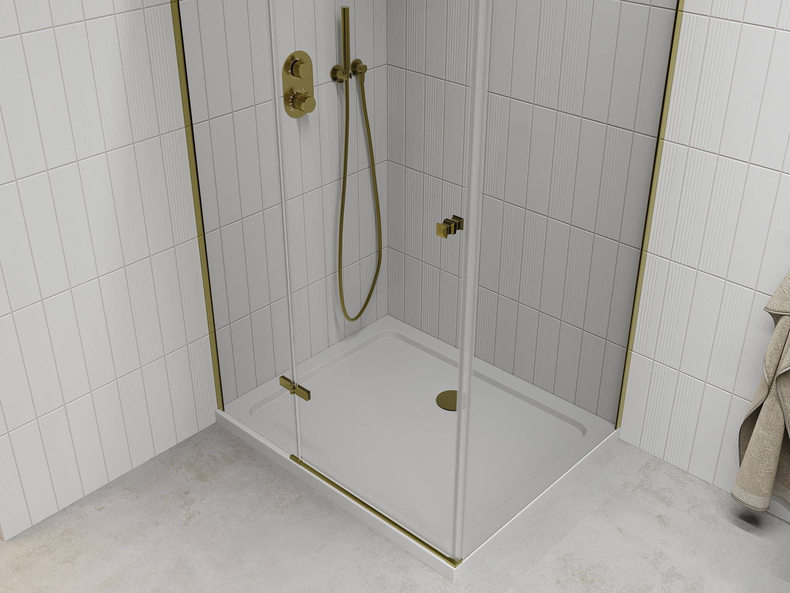 Mexen Roma cabine de douche pivotante 80 x 100 cm, transparent, or + receveur plat - 854-080-100-50-00-4010