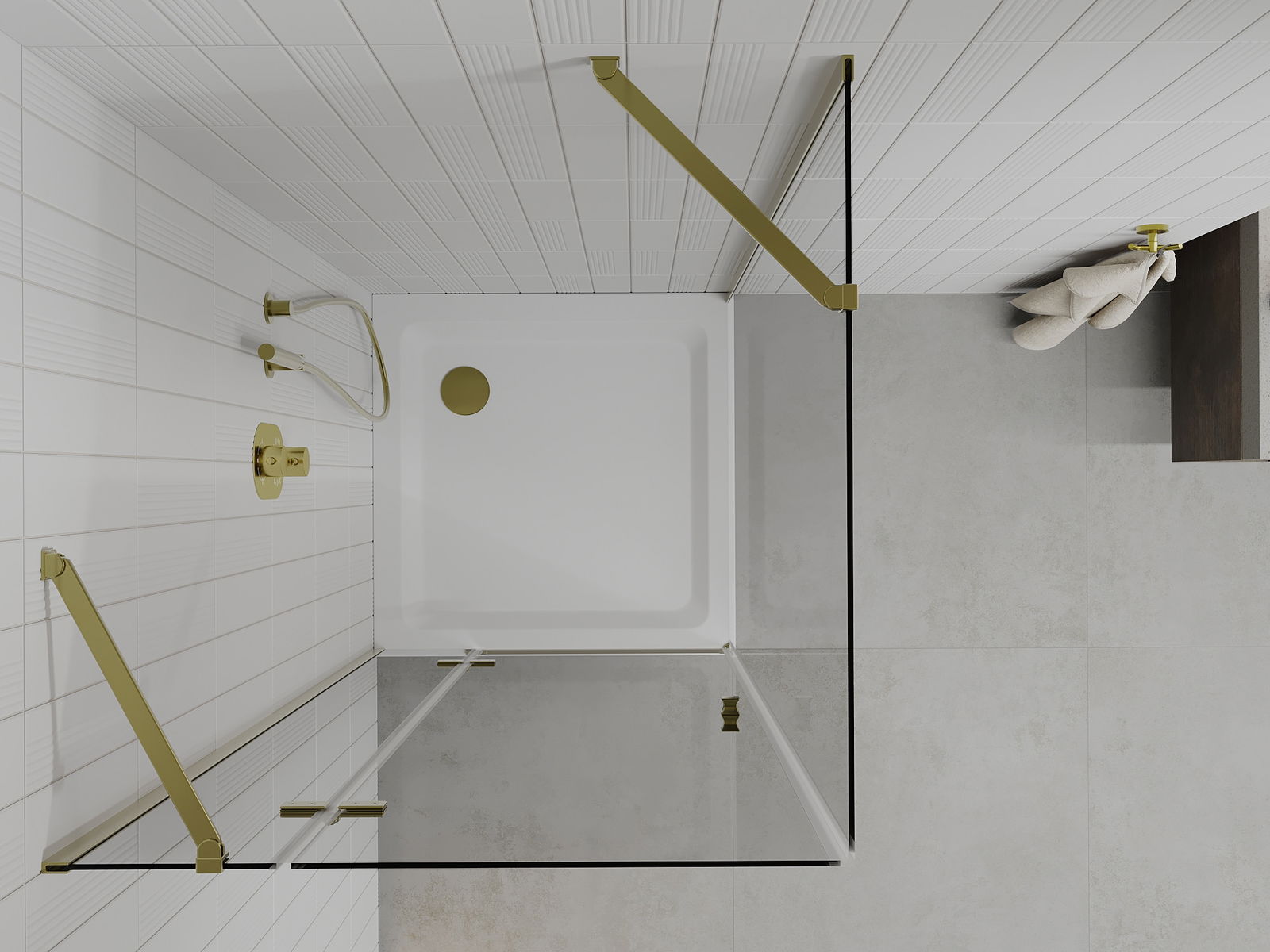 Mexen Roma cabine de douche pivotante 90 x 90 cm, transparente, dorée + bac de douche Flat - 854-090-090-50-00-4010