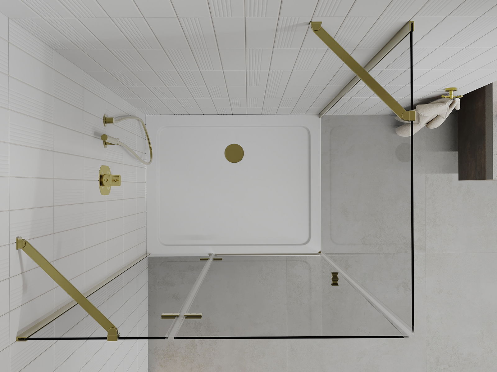 Mexen Roma cabine de douche pivotante 100 x 70 cm, transparent, dorée + receveur Flat - 854-100-070-50-00-4010