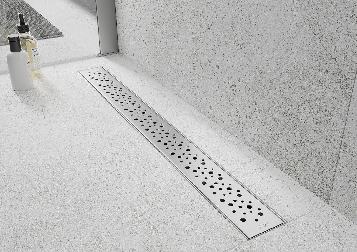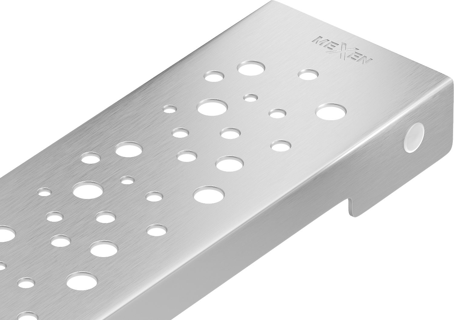 Les entretoises amortissantes garantissent un positionnement uniforme de la grille, assurant son aspect esthétique. Elles préviennent efficacement le frottement du gril contre le boîtier et réduisent le bruit généré lors de la chute d'eau directement dans le drain.
