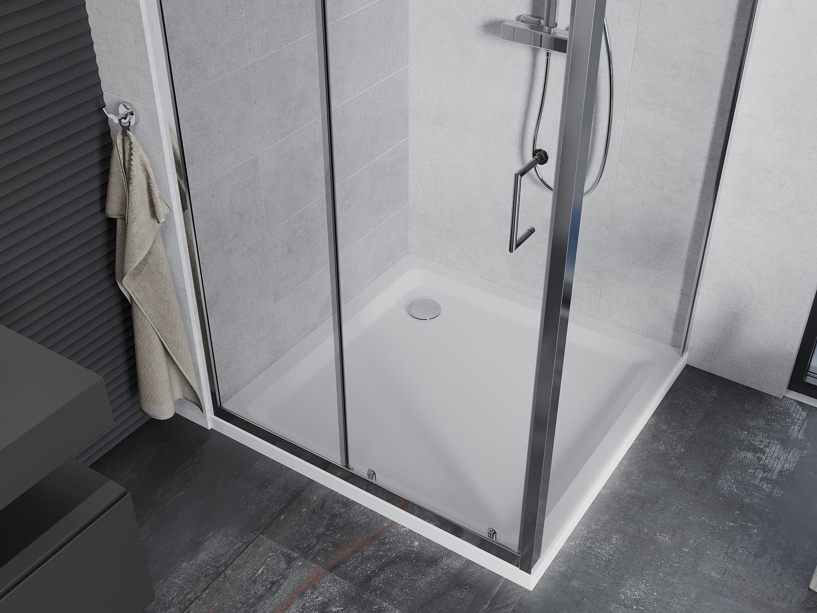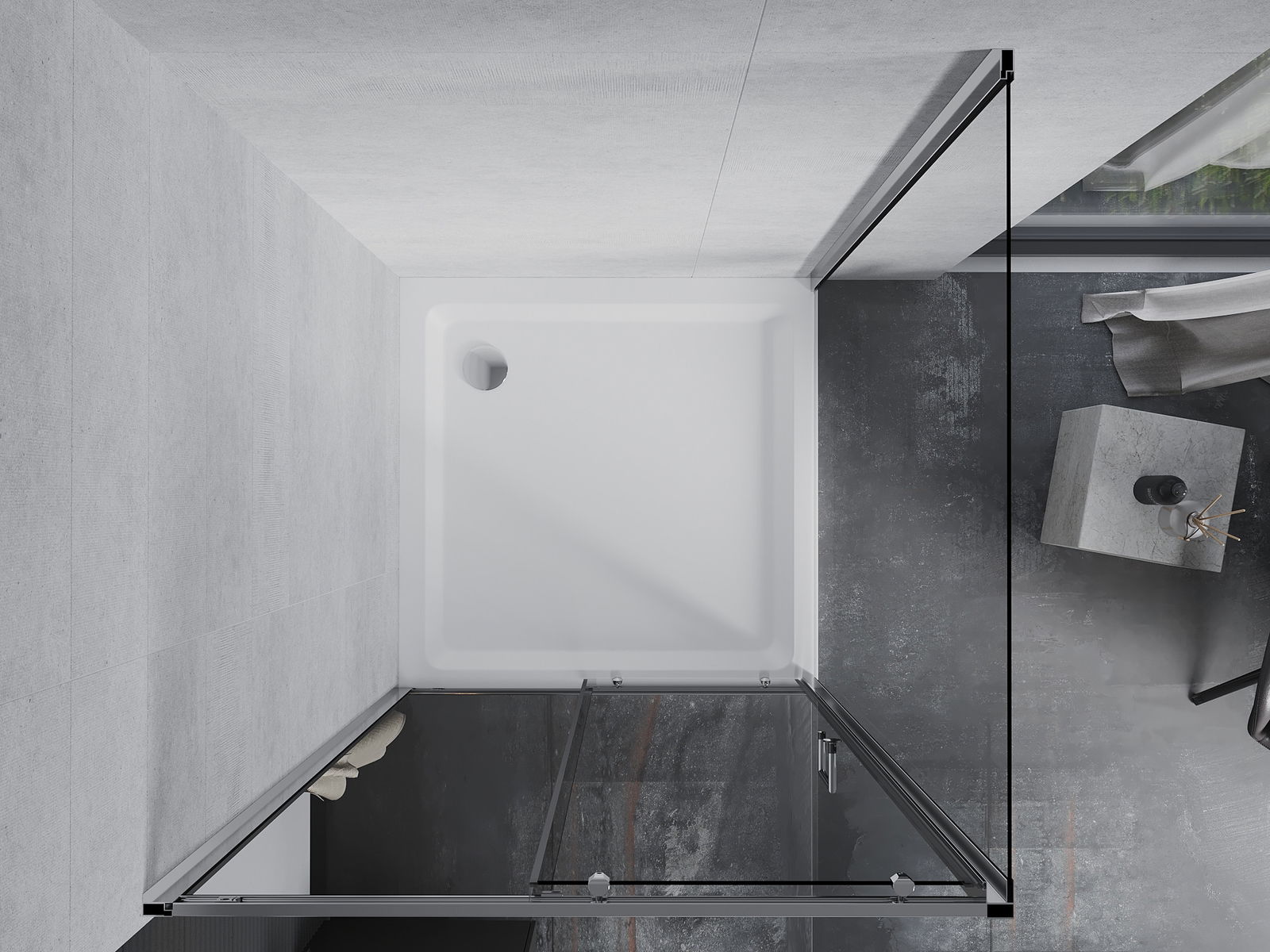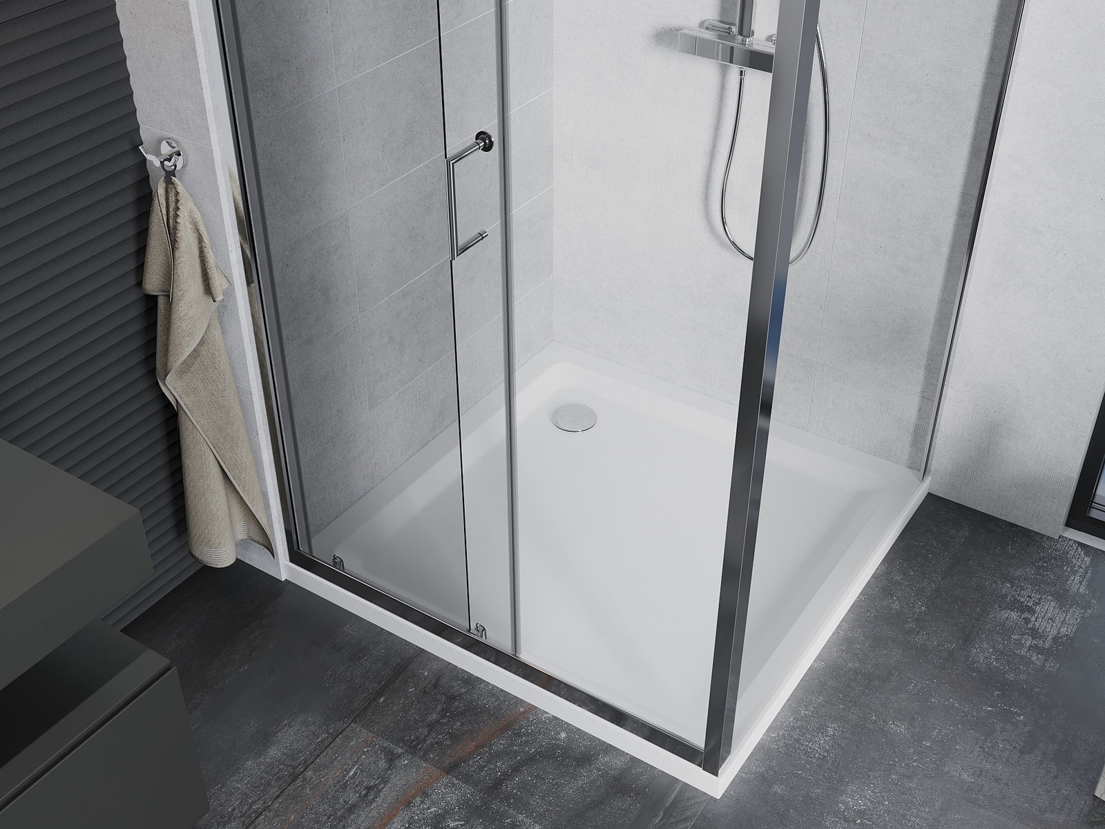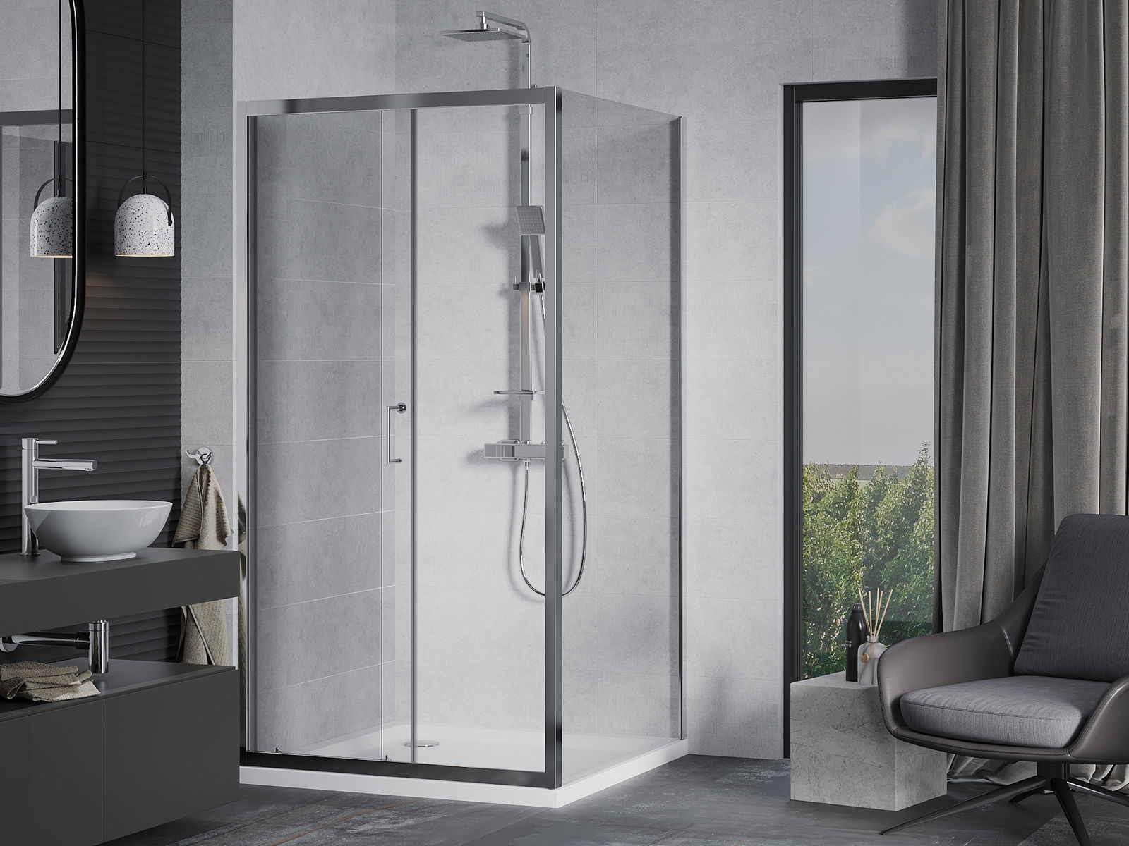 Mexen Apia cabine de douche coulissante 90 x 90 cm, transparente, chrome + receveur Flat - 840-090-090-01-00-4010