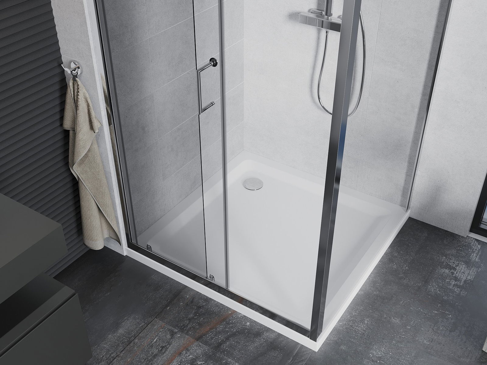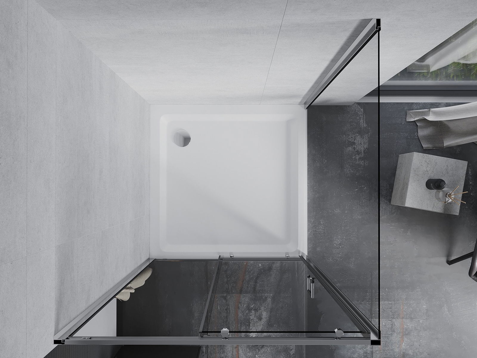 Mexen Apia cabine de douche coulissante 100 x 100 cm, transparent, chrome + receveur Flat - 840-100-100-01-00-4010