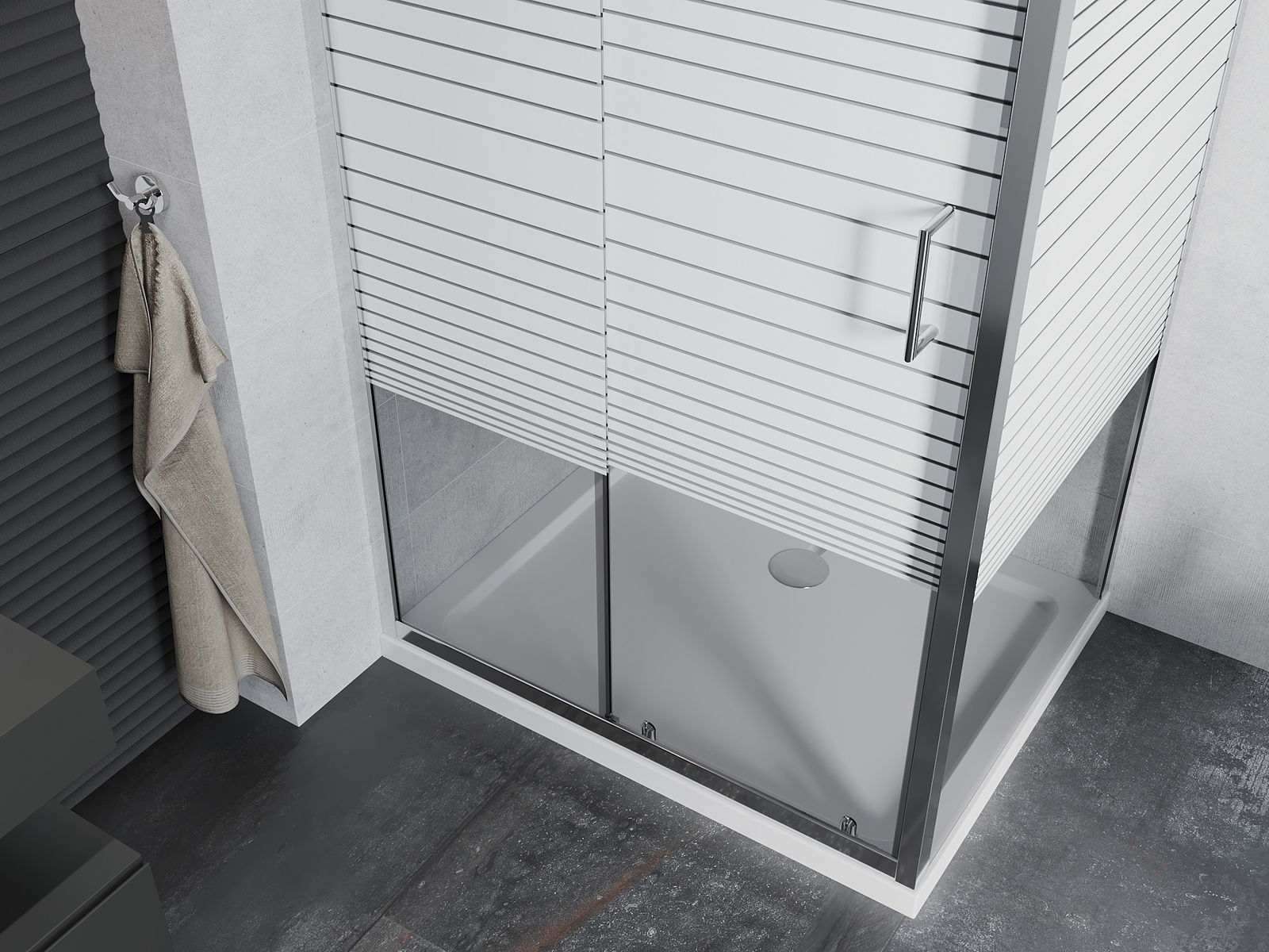 Mexen Apia cabine de douche coulissante 130 x 100 cm, bandes blanches, chrome + receveur plat - 840-130-100-01-20-4010