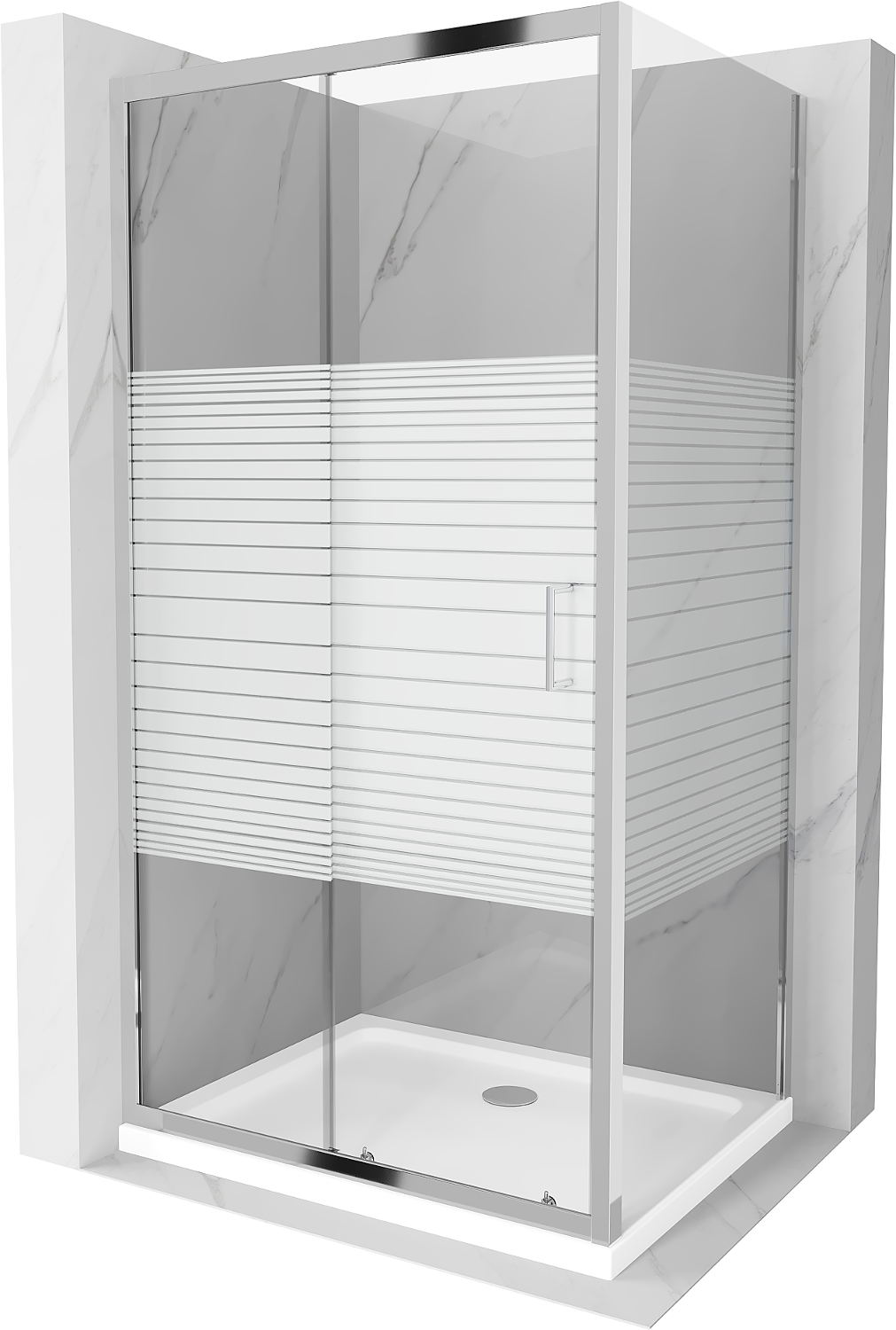 Mexen Apia cabine de douche coulissante 140 x 80 cm, bandes blanches, chrome + receveur plat - 840-140-080-01-20-4010