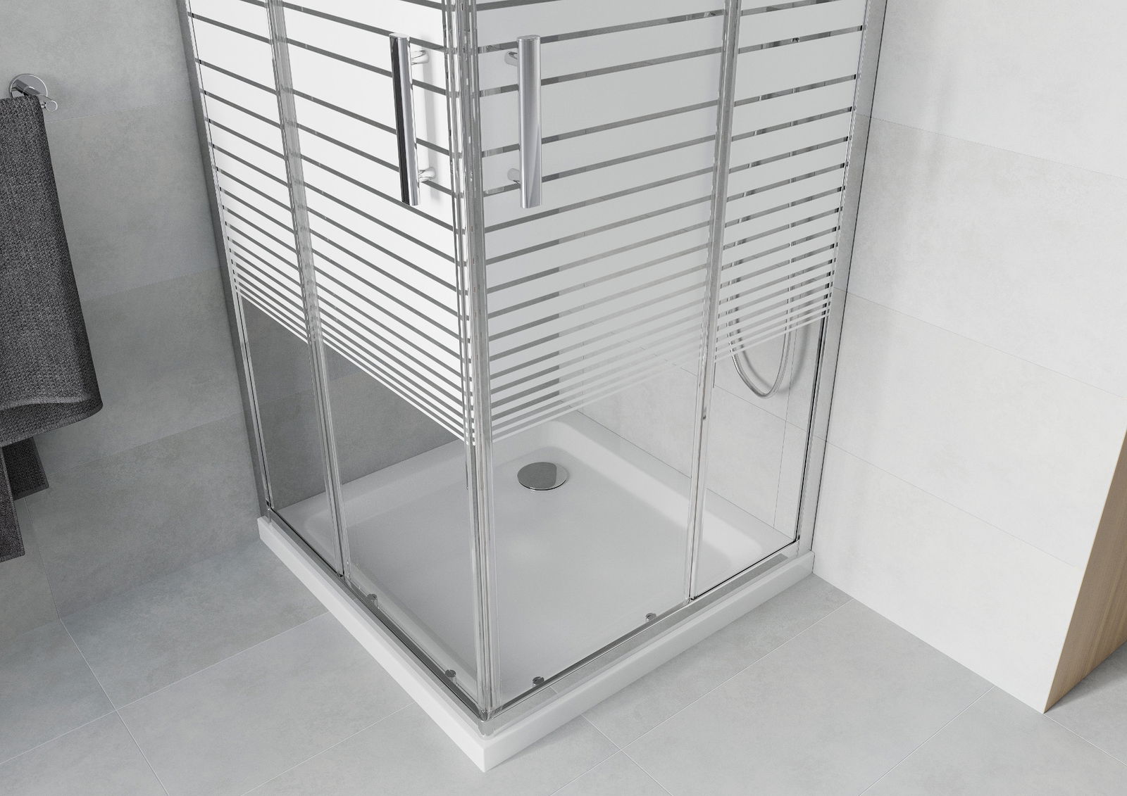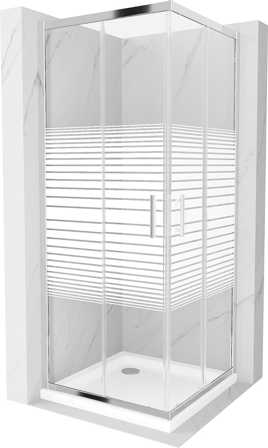 Mexen Rio cabine de douche carrée 70 x 70 cm, bandes blanches, chrome + receveur plat, blanc - 860-070-070-01-20-4010