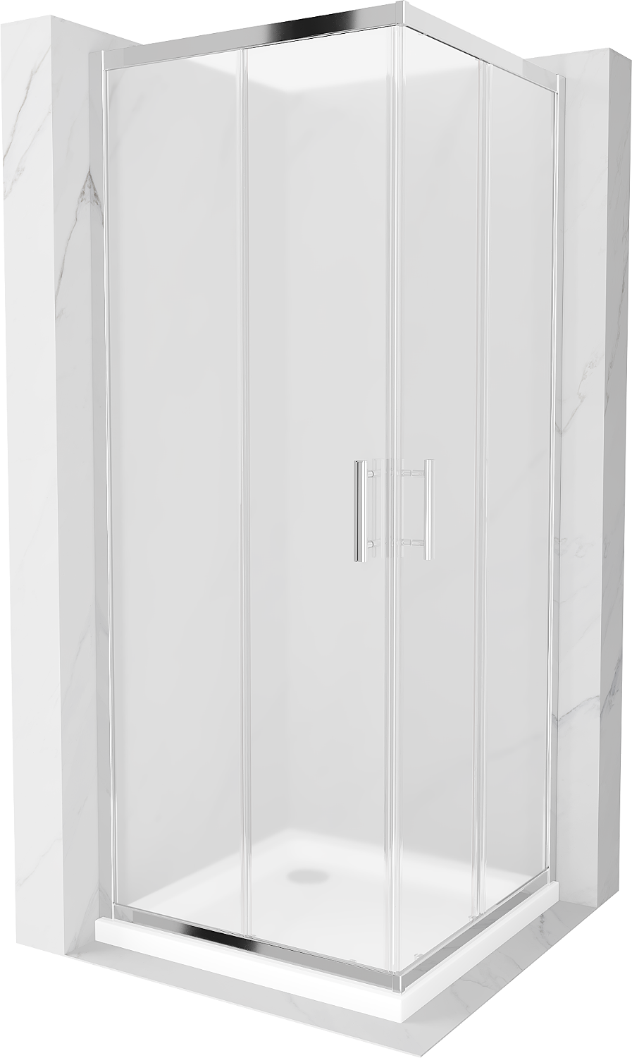 Mexen Rio cabine de douche carrée 70 x 70 cm, givrée, chrome + receveur Flat, blanc - 860-070-070-01-30-4010