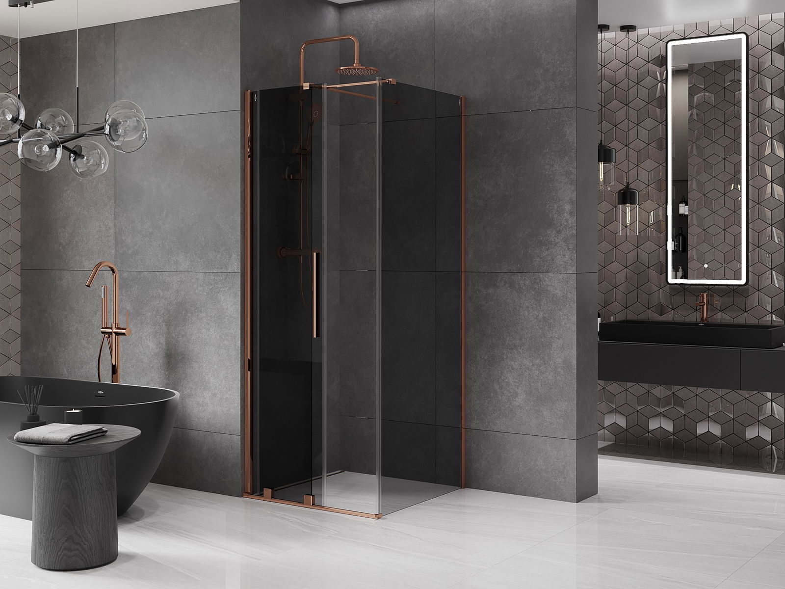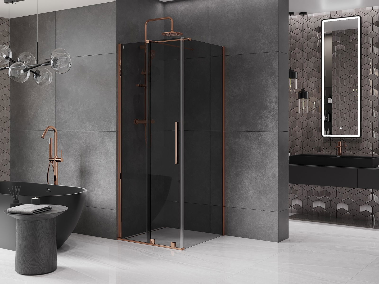 Mexen Velar cabine de douche coulissante 120 x 120 cm, graphite, or rose - 871-120-120-41-60