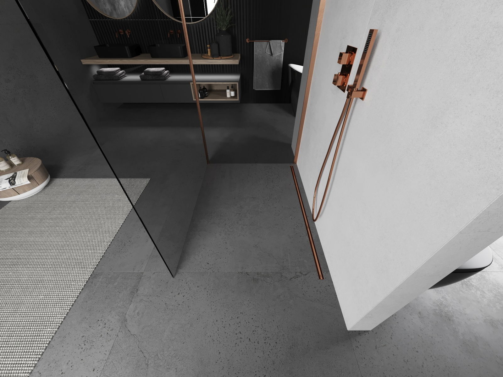 Mexen Kioto paroi de douche Walk-in 90 x 75 cm, transparent, cuivre brossé - 800-090-212-65-00-075