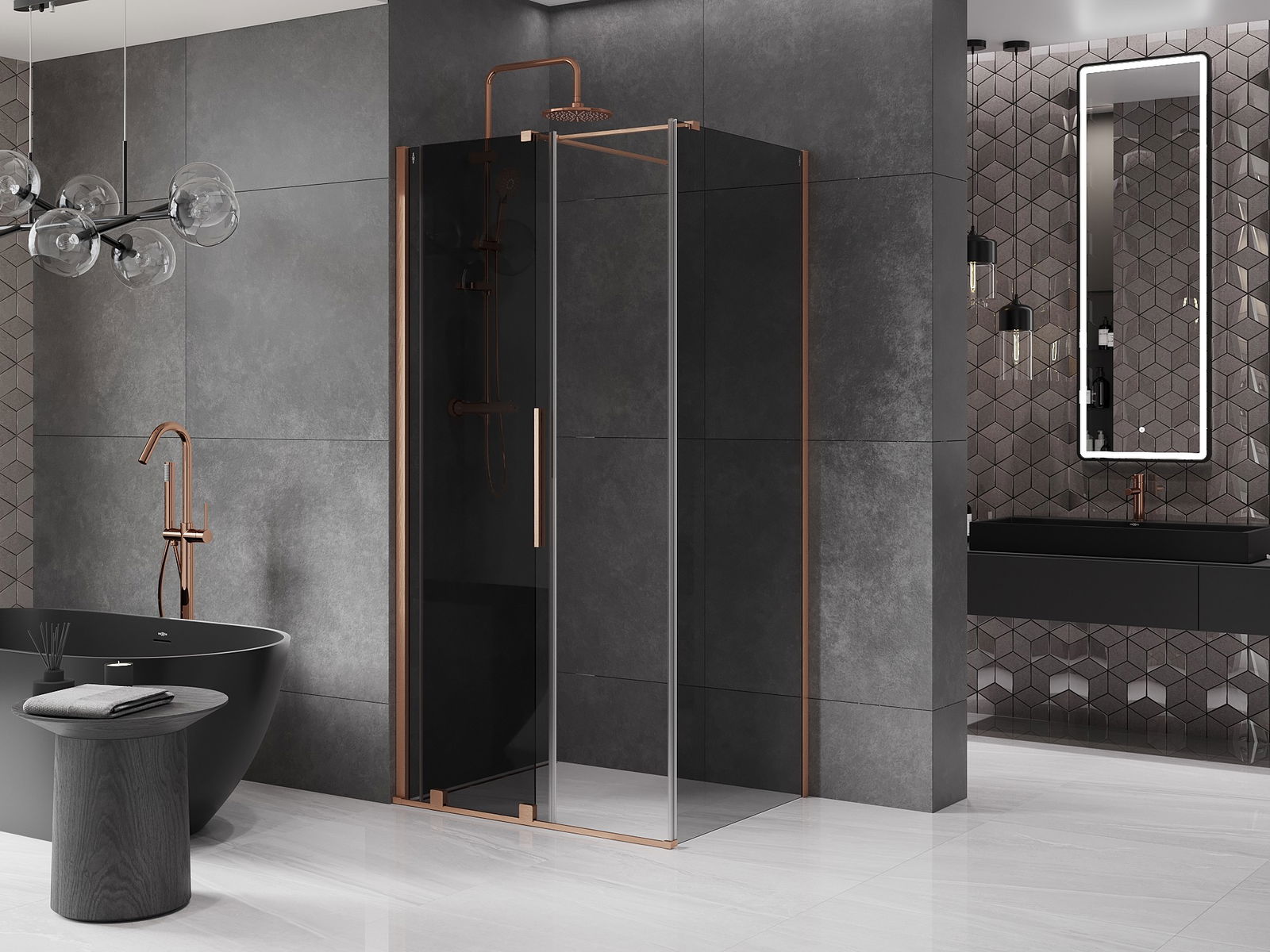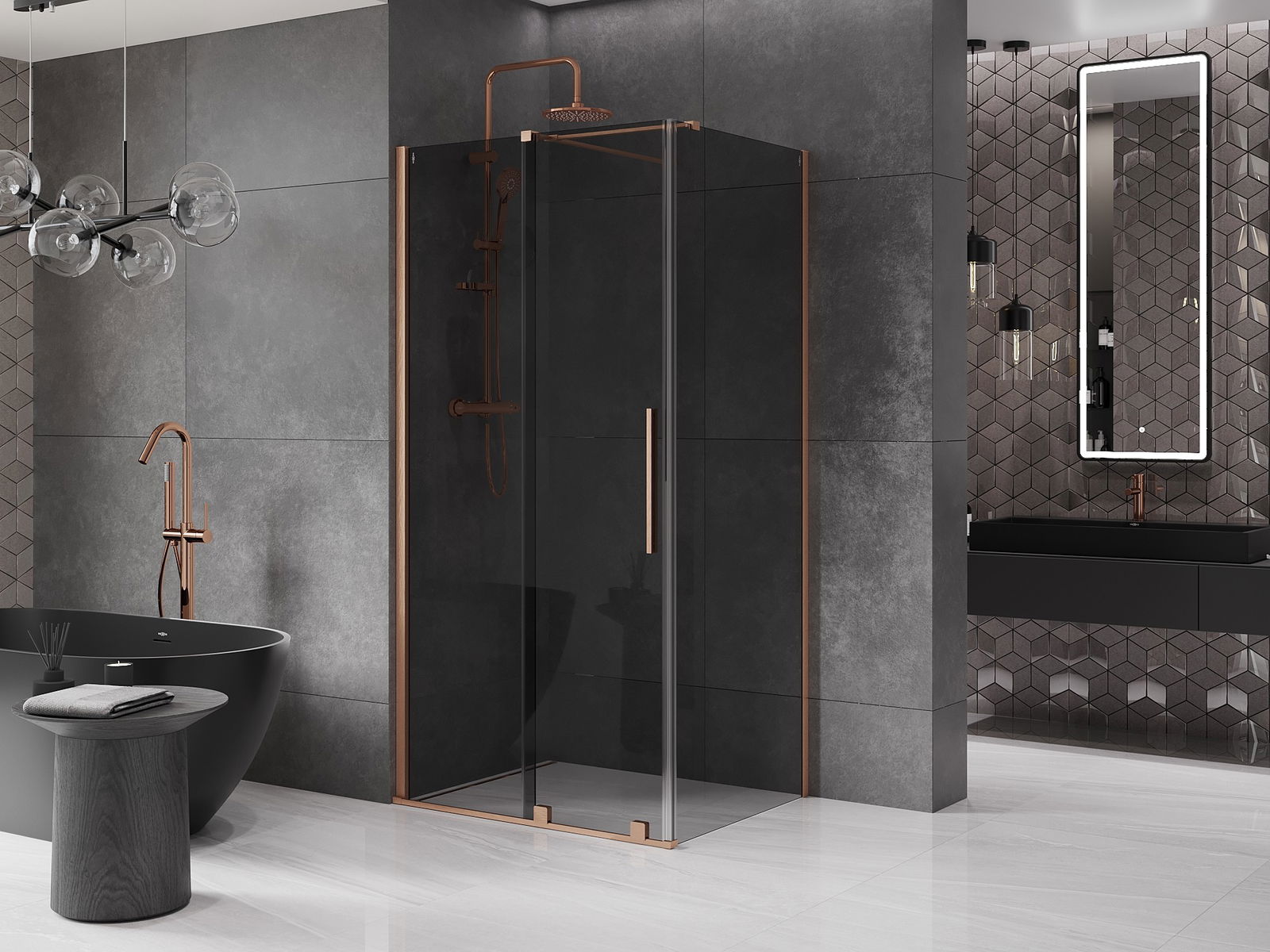 Mexen Velar cabine de douche coulissante 90 x 80 cm, graphite, cuivre brossé - 871-090-080-41-65