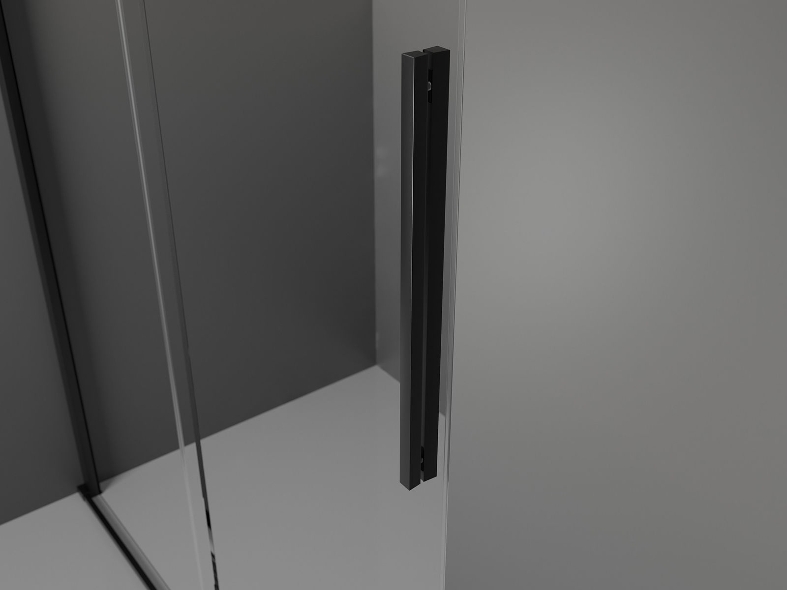 Poignée pratique et confortable en acier inoxydable. La forme moderne associée à une finition assortie à la couleur des profilés confère à l'ensemble un aspect moderne et élégant, soulignant l'esthétique de chaque salle de bain.