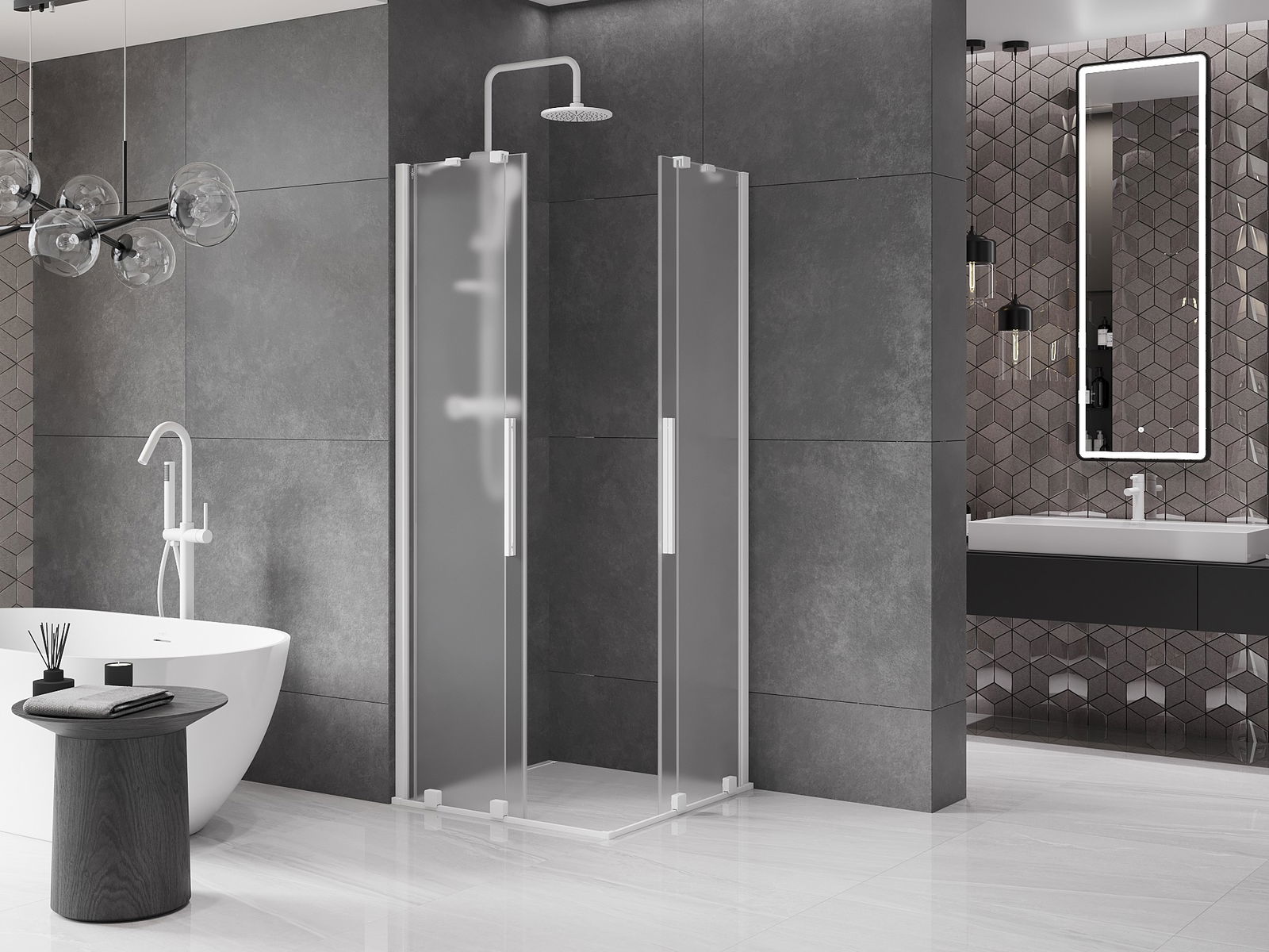 Mexen Velar Duo cabine de douche coulissante 90 x 90 cm, givre, blanc - 871-090-090-32-20