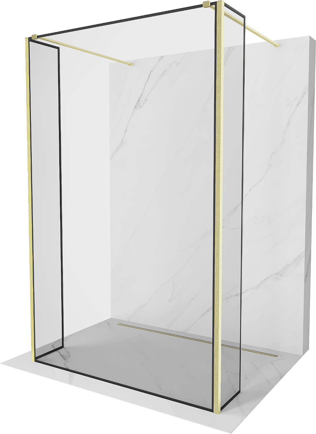 Mexen Kioto paroi de douche autoportante 130 x 30 x 30 cm, cadre noir, or brossé - 800-130-030-222-55-70-030