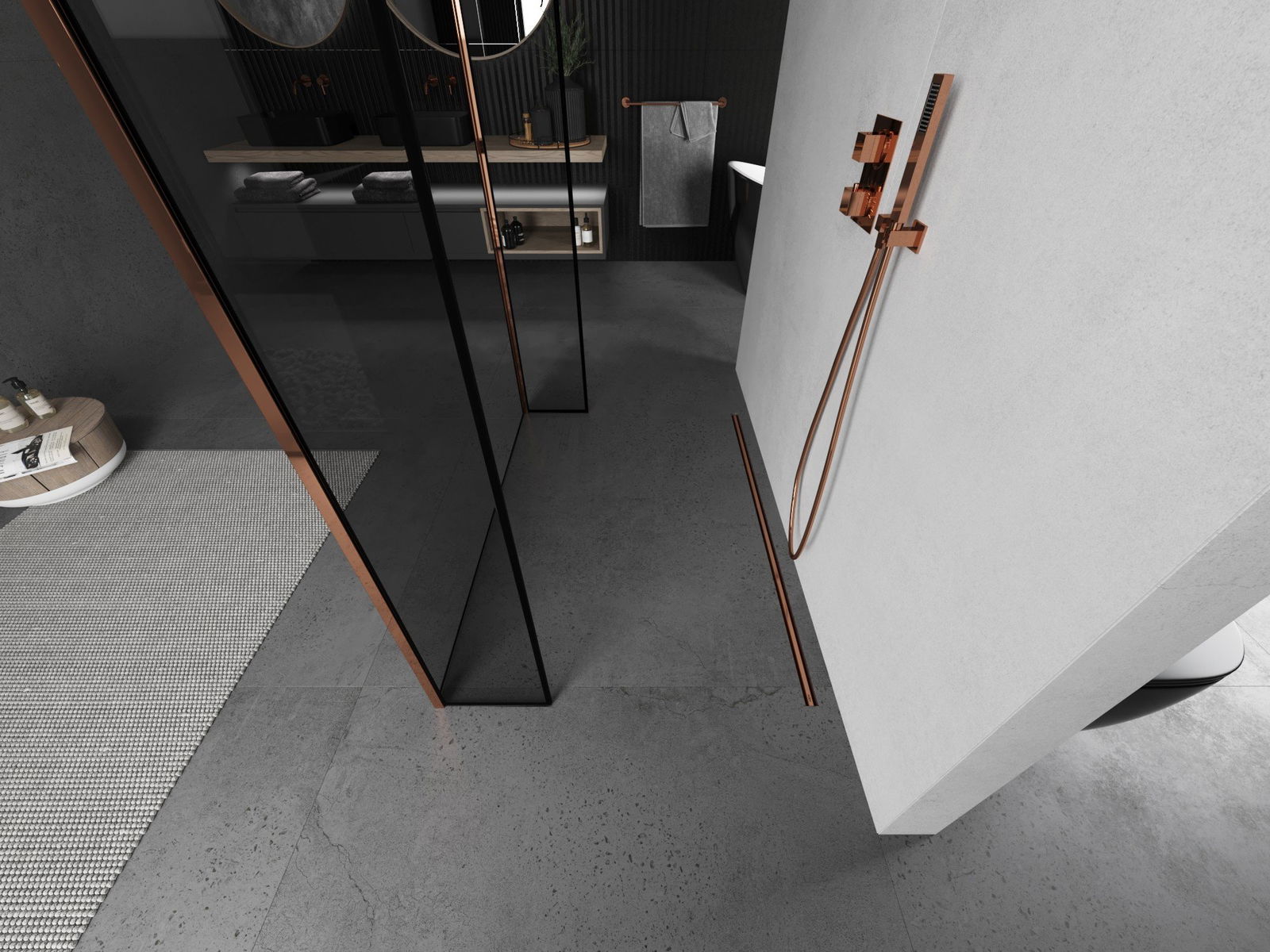 Mexen Kioto paroi de douche autoportante 150 x 30 x 30 cm, cadre noir, or rose - 800-150-030-222-60-70-030