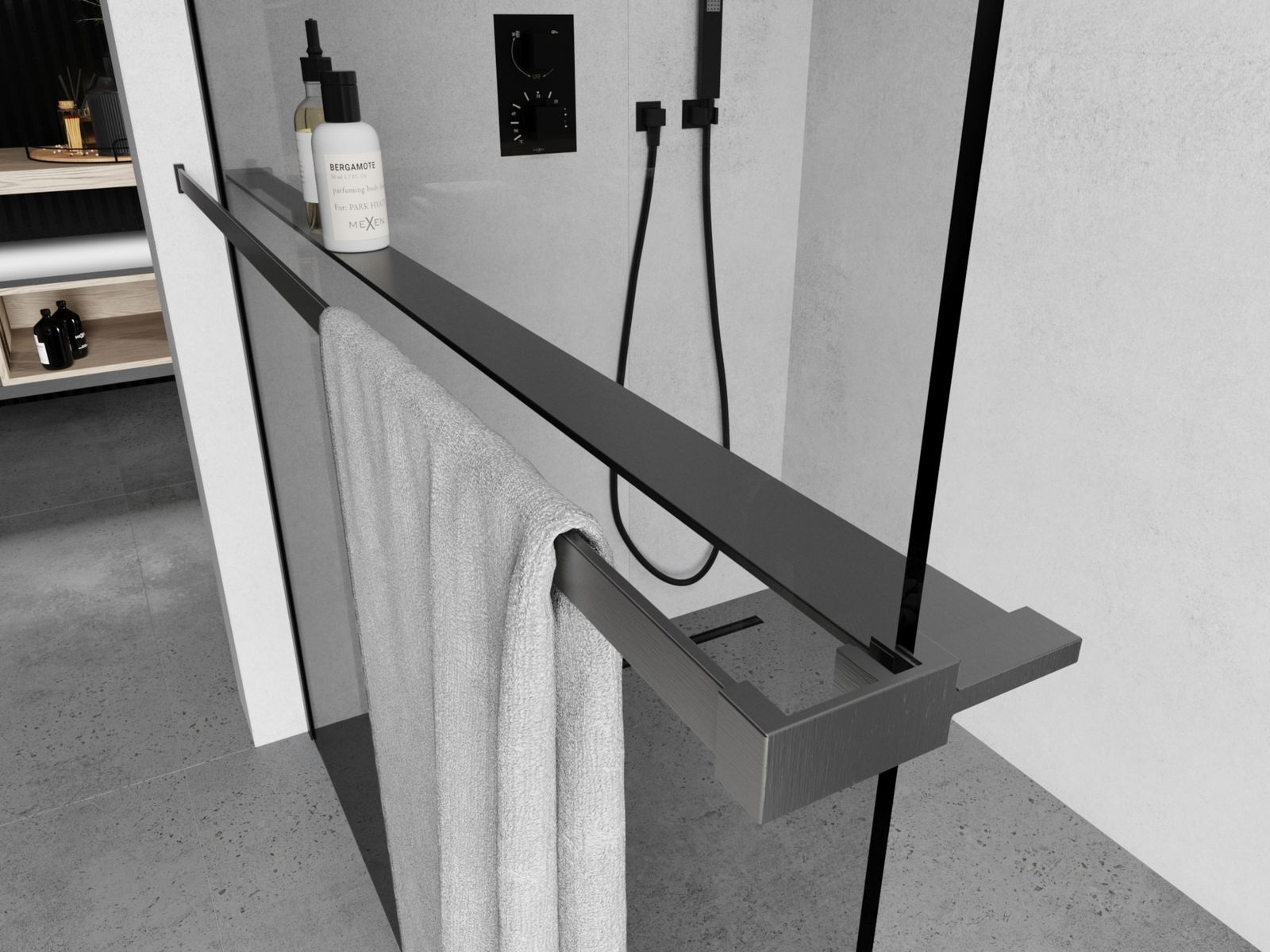Mexen étagère pour paroi de douche avec balustrade pour serviettes, gris canon brossé - 800-02-66