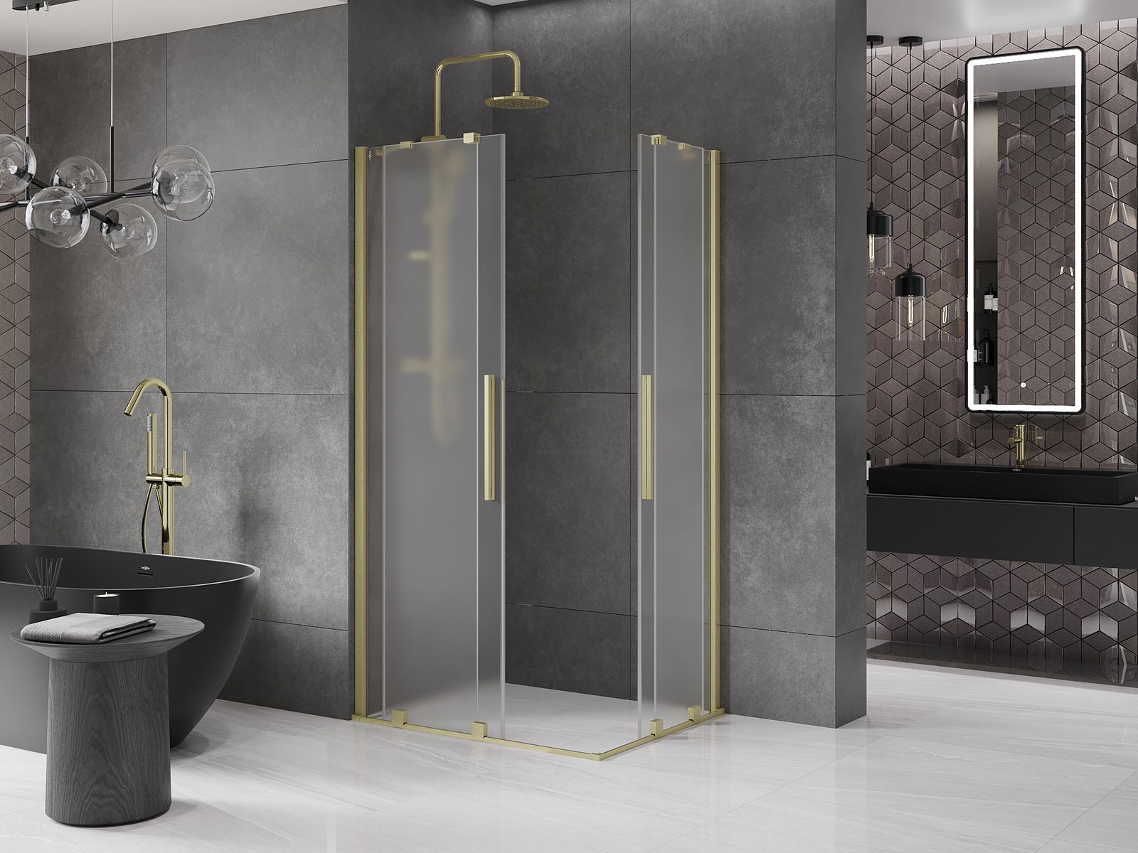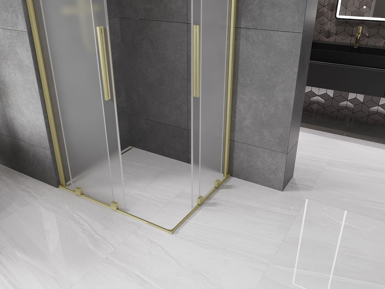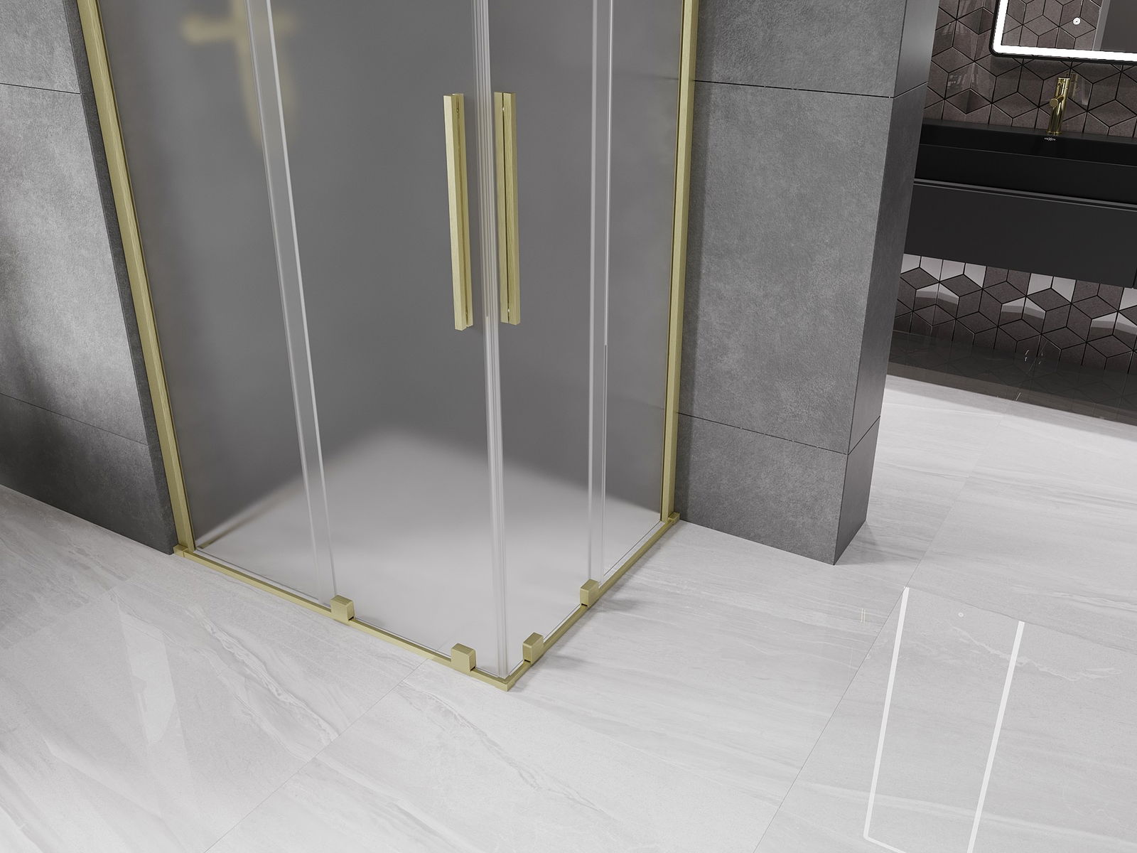 Mexen Velar Duo cabine de douche coulissante 90 x 80 cm, givrée, dorée brossée - 871-090-080-32-55