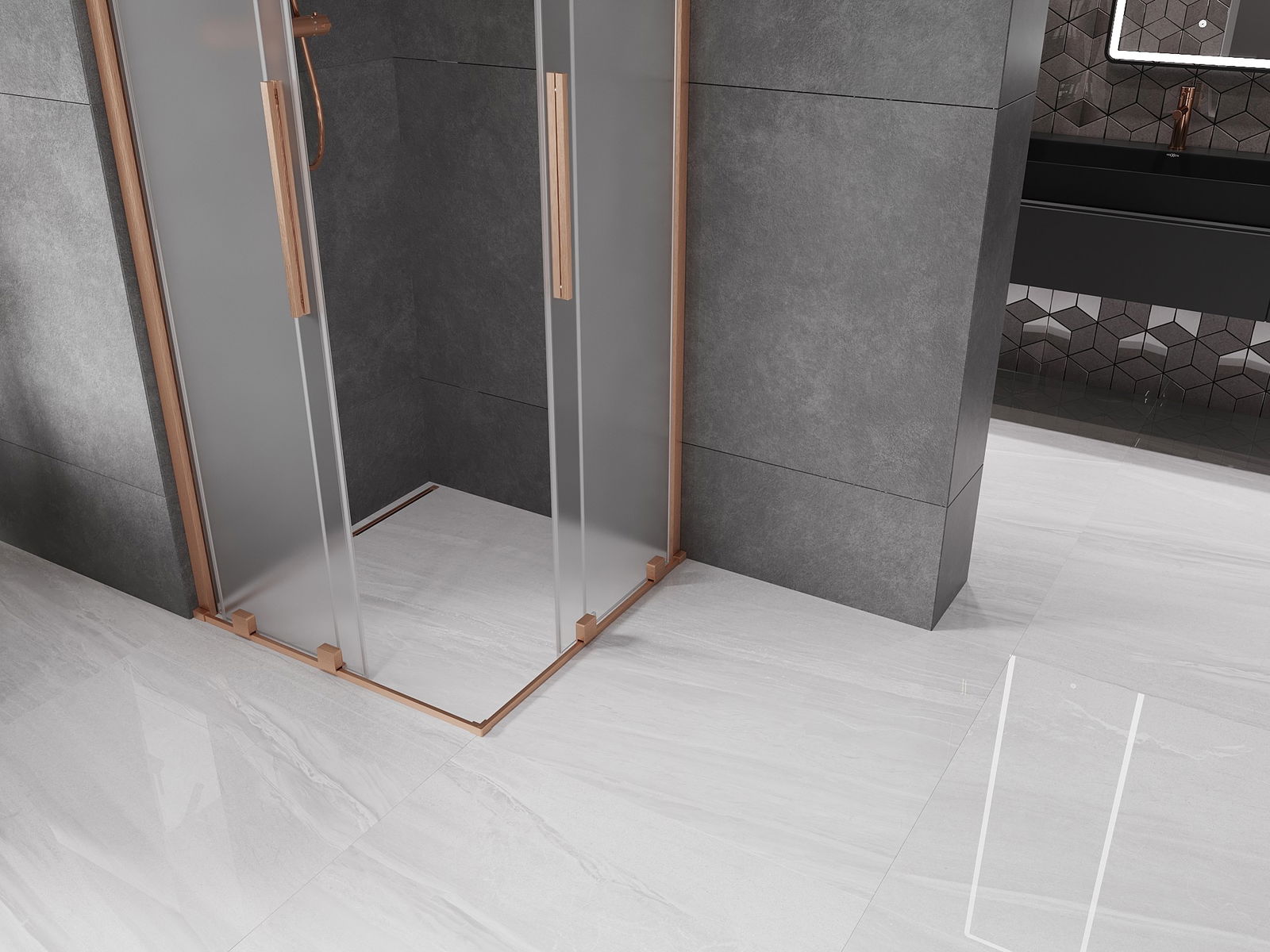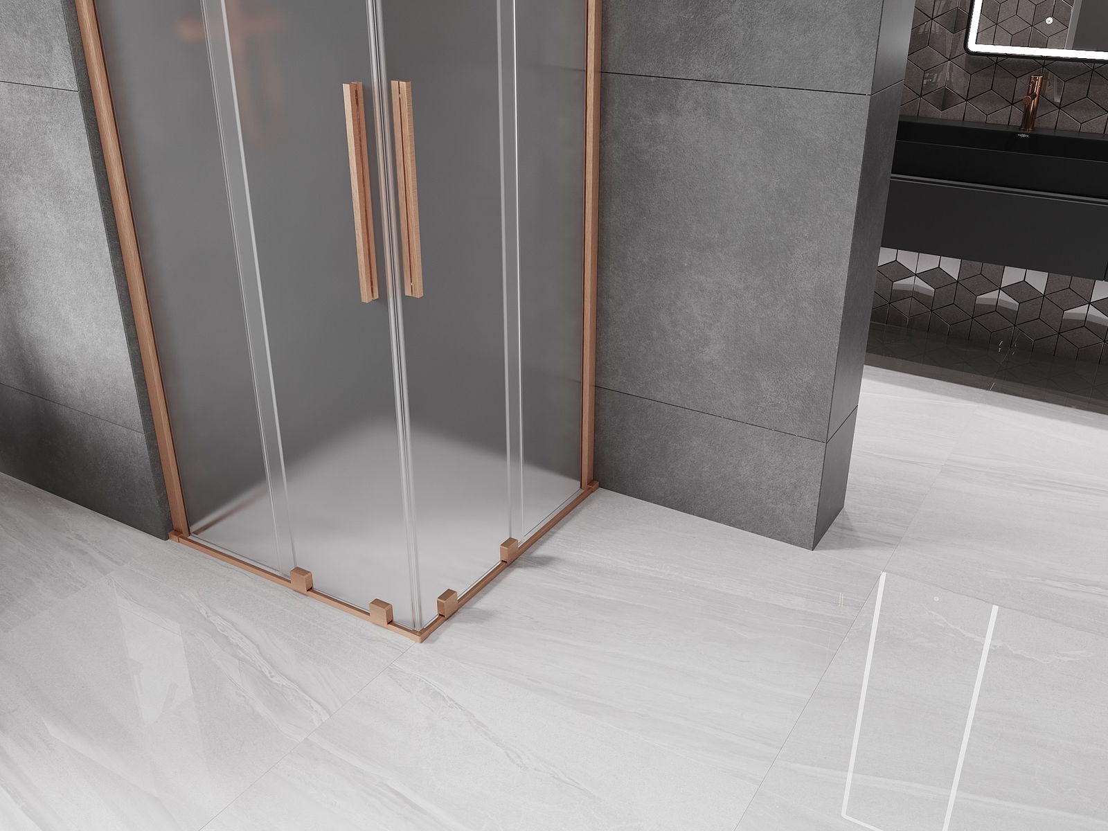 Mexen Velar Duo cabine de douche coulissante 100 x 100 cm, gelé, cuivre brossé - 871-100-100-32-65