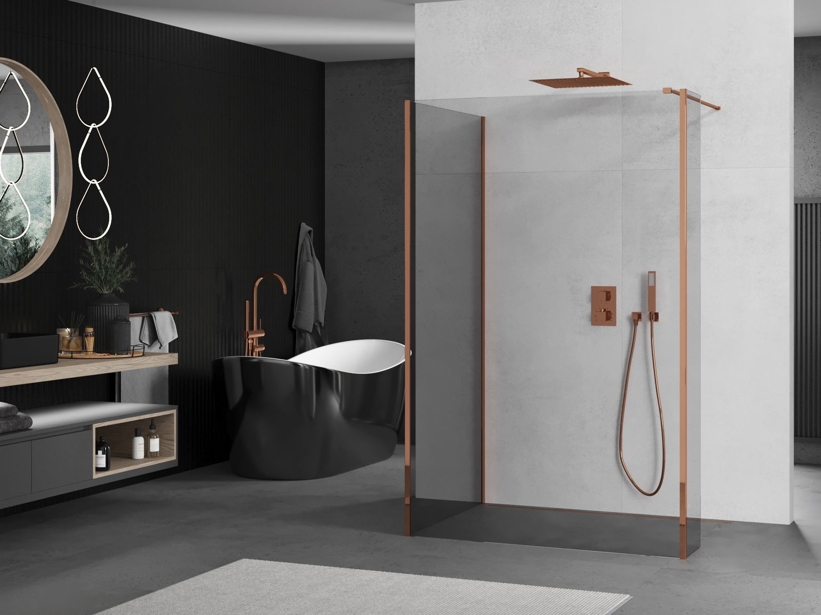 Mexen Kioto paroi de douche Walk-in 100 x 75 x 30 cm, transparent, or rose - 800-100-075-221-60-00-030