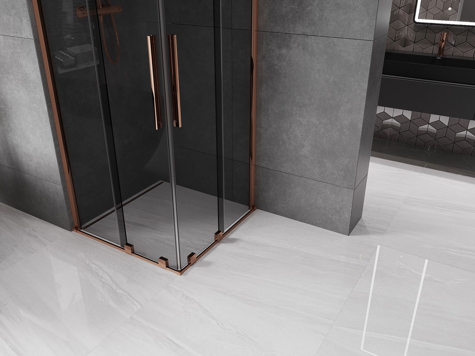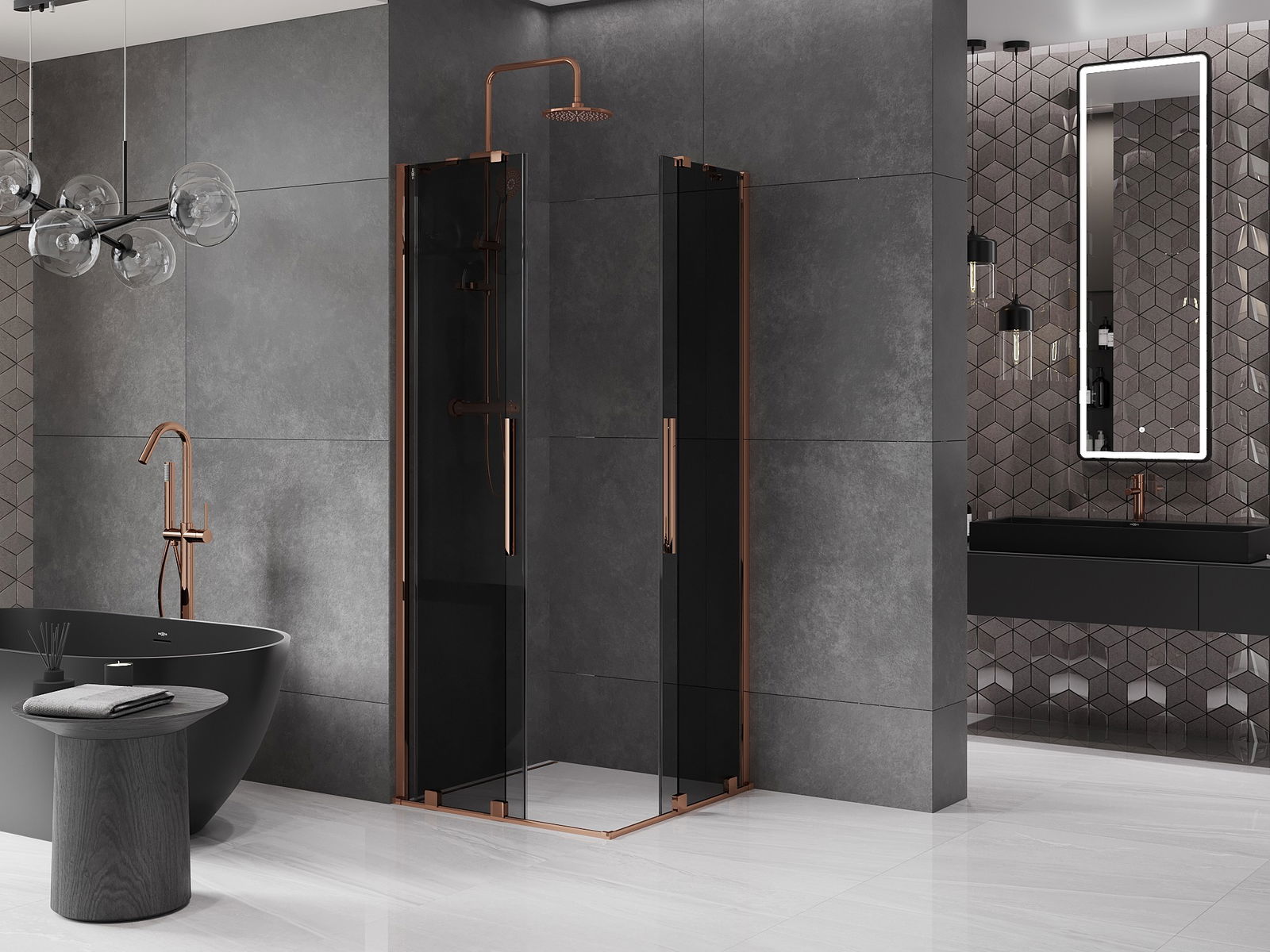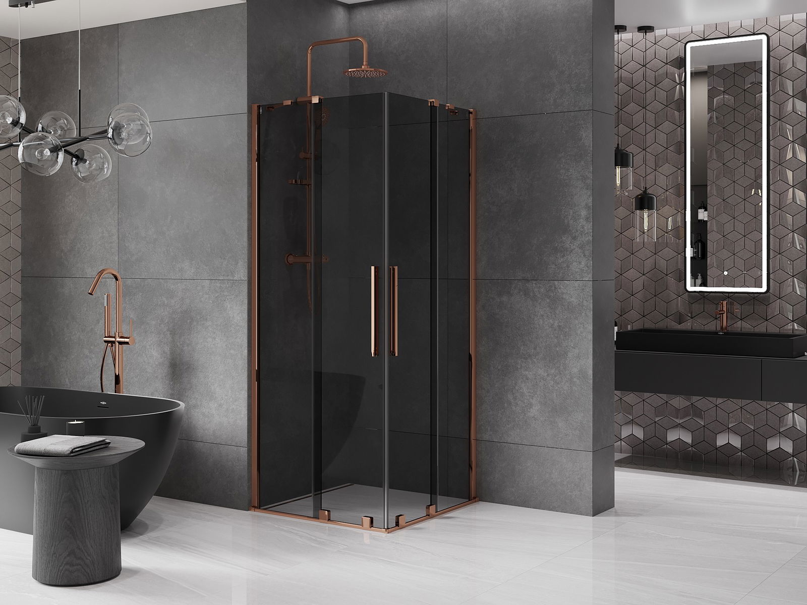 Mexen Velar Cabine de douche coulissante Duo 90 x 90 cm, graphite, or rose - 871-090-090-42-60