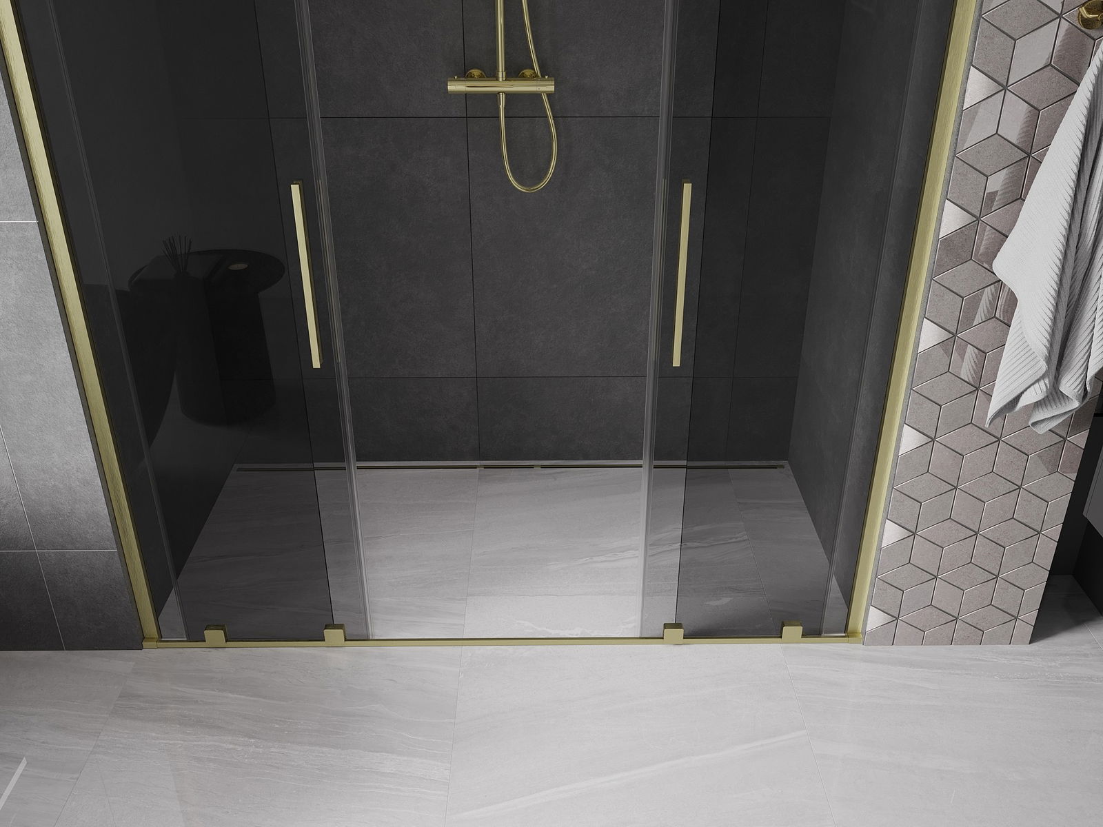Mexen Velar Porte de douche coulissante Duo 170 cm, graphite, or brossé - 871-170-000-42-55