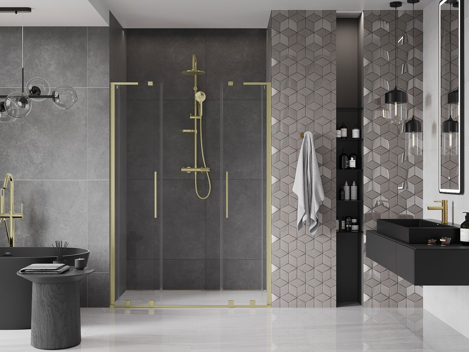 Mexen Velar L Duo porte de douche coulissante 140 cm, transparent, doré brossé - 871-140-003-02-55