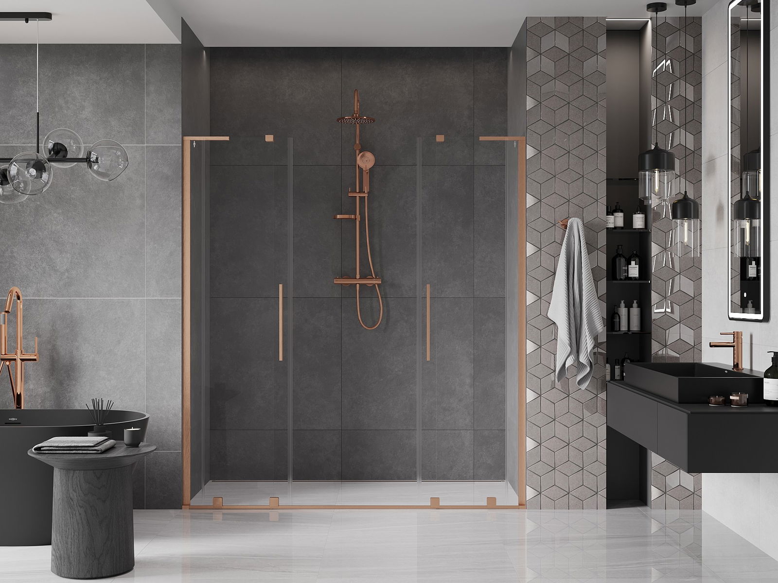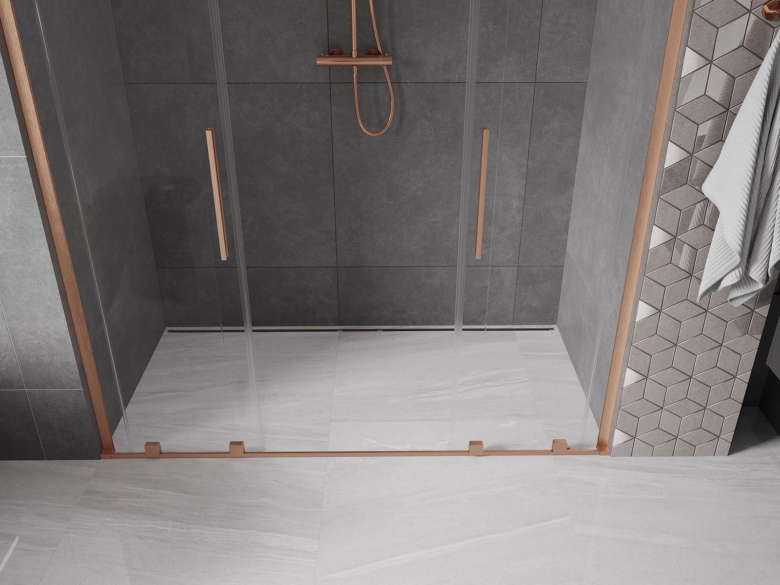 Mexen Velar L Duo portes de douche coulissantes 170 cm, transparent, cuivre brossé - 871-170-003-02-65