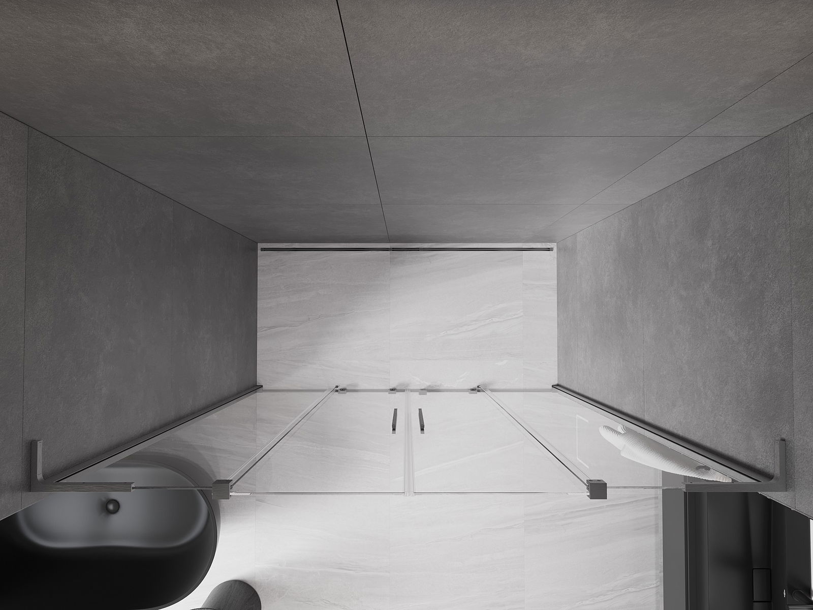 Poignée pratique et confortable en acier inoxydable. La forme moderne associée à une finition assortie à la couleur des profilés confère à l'ensemble un aspect moderne et élégant, soulignant l'esthétique de chaque salle de bain.