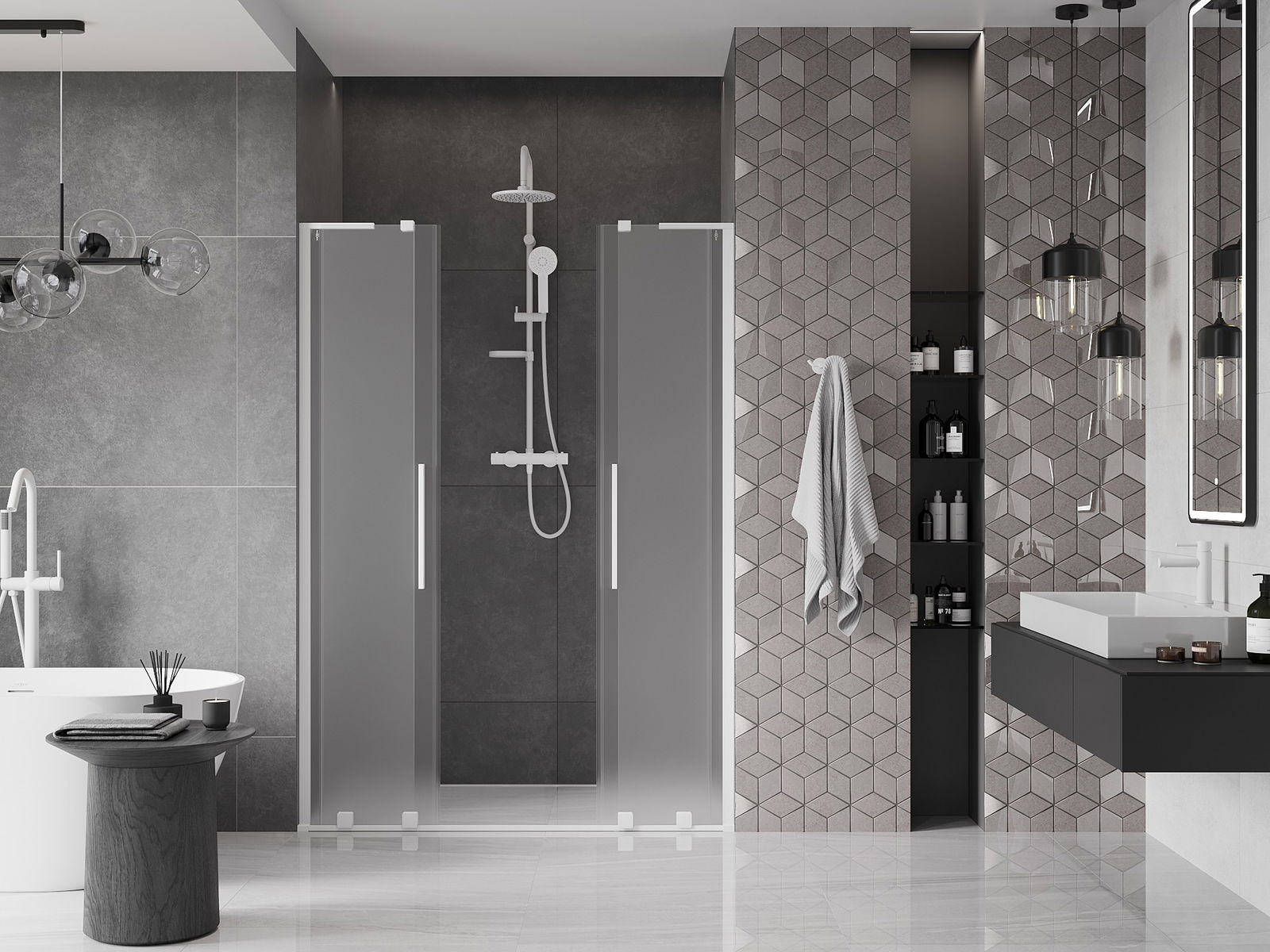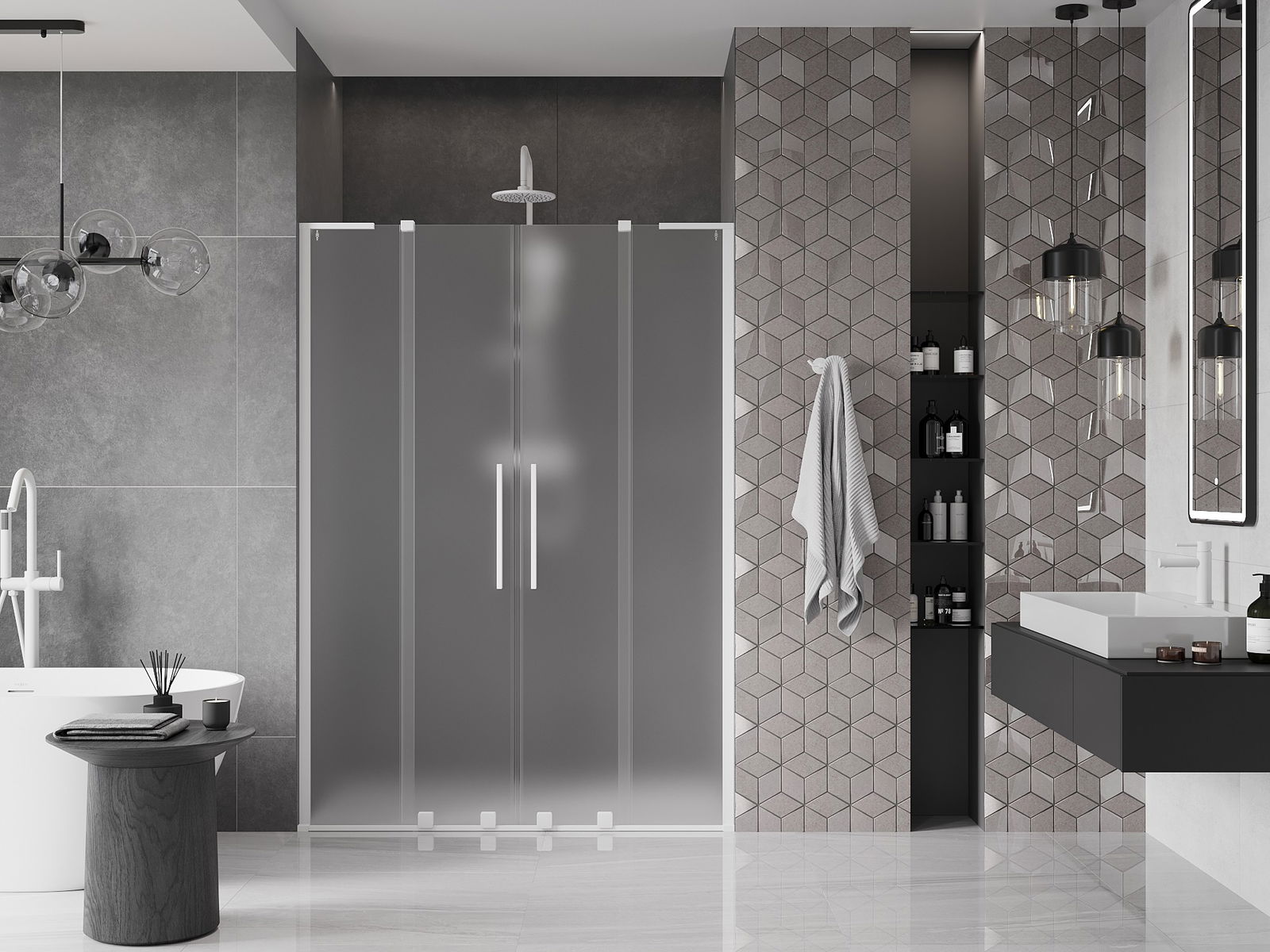 Mexen Velar L Duo portes de douche coulissantes 160 cm, dépoli, blanc - 871-160-003-32-20