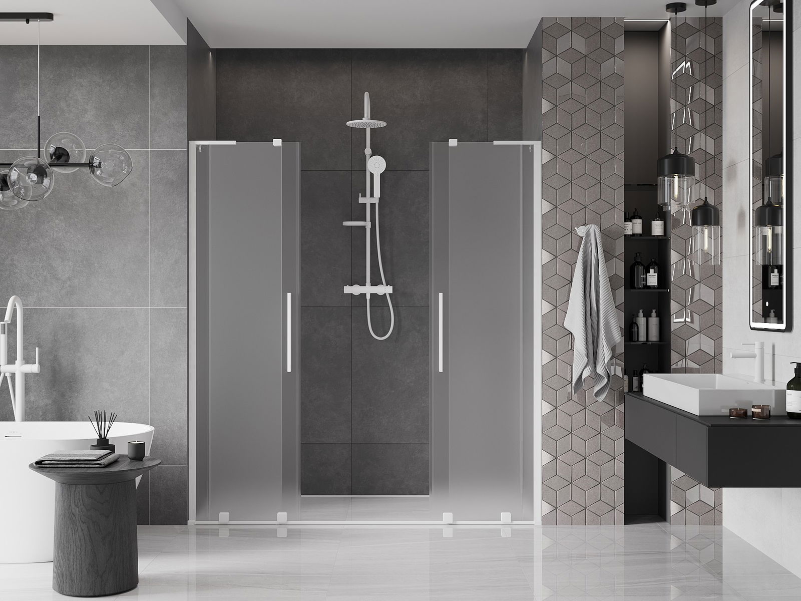 Mexen Velar L Duo porte de douche coulissante 170 cm, givré, blanc - 871-170-003-32-20