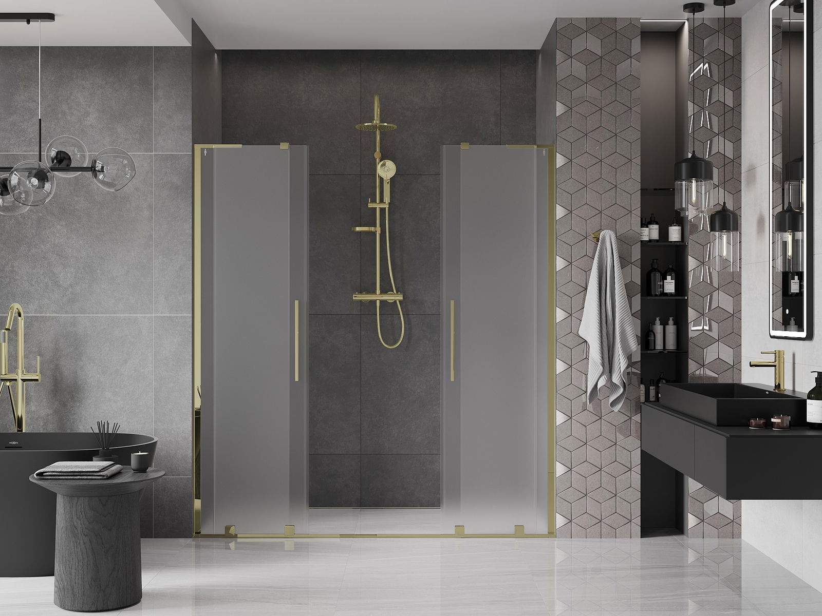 Mexen Velar L Duo portes de douche coulissantes 180 cm, givré, or - 871-180-003-32-50