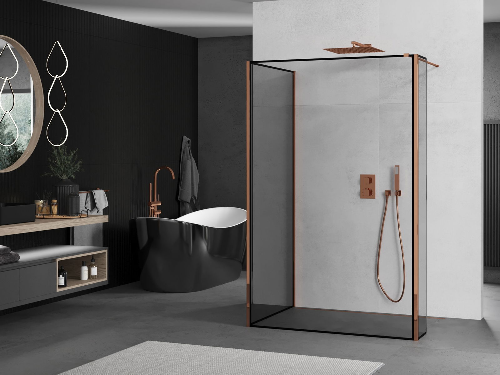 Mexen Kioto paroi de douche Walk-in 140 x 80 x 30 cm, cadre noir, or rose - 800-140-080-221-60-70-030