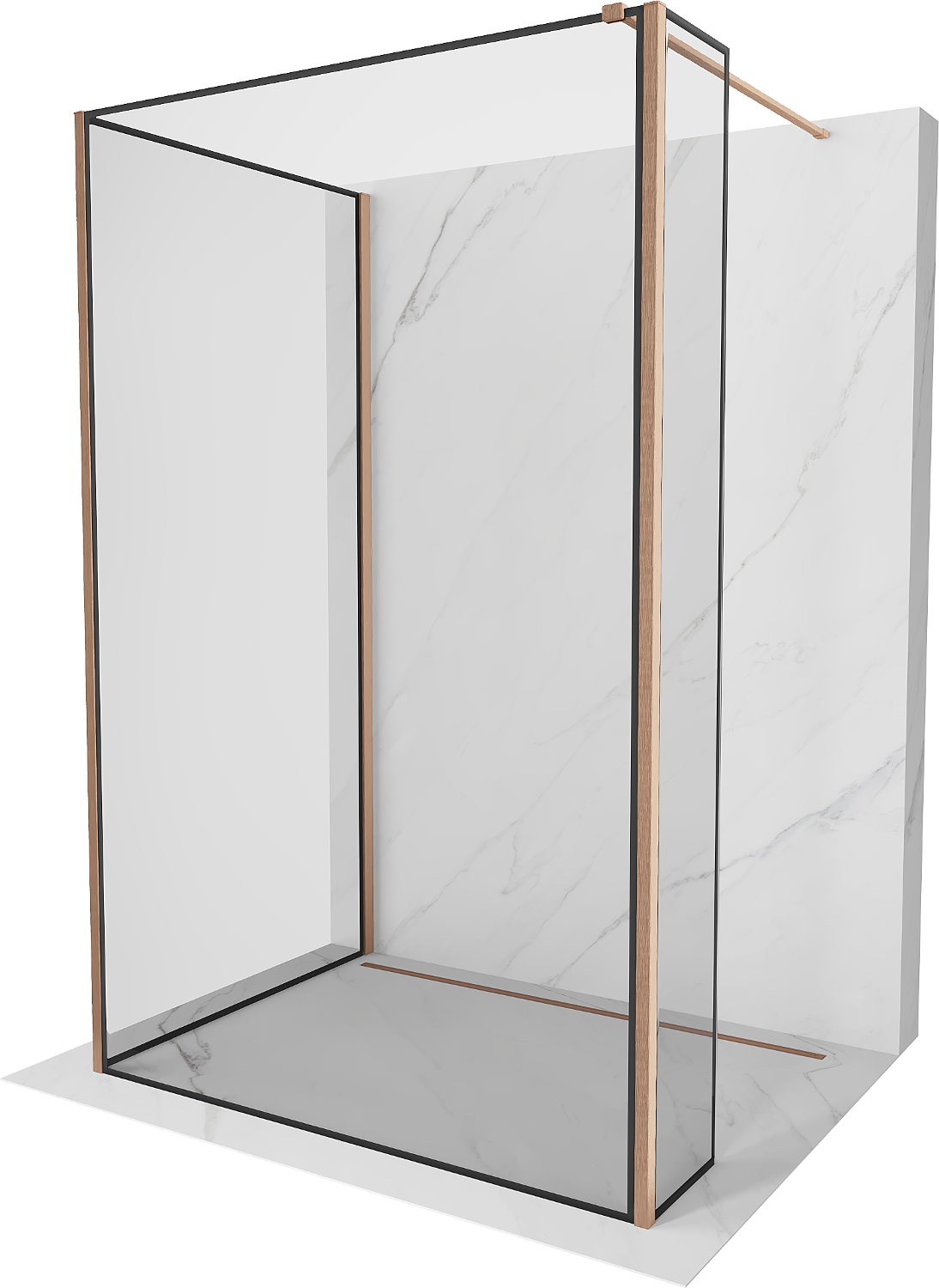 Mexen Kioto paroi de douche Walk-in 110 x 110 x 30 cm, cadre noir, cuivre brossé - 800-110-110-221-65-70-030