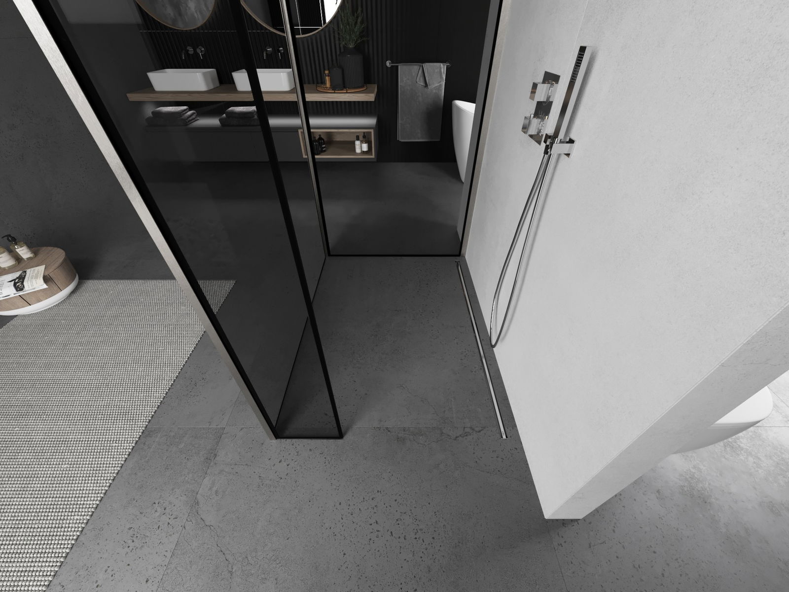Mexen Kioto paroi de douche Walk-in 140 x 70 x 30 cm, cadre noir, nickel brossé - 800-140-070-221-97-70-030